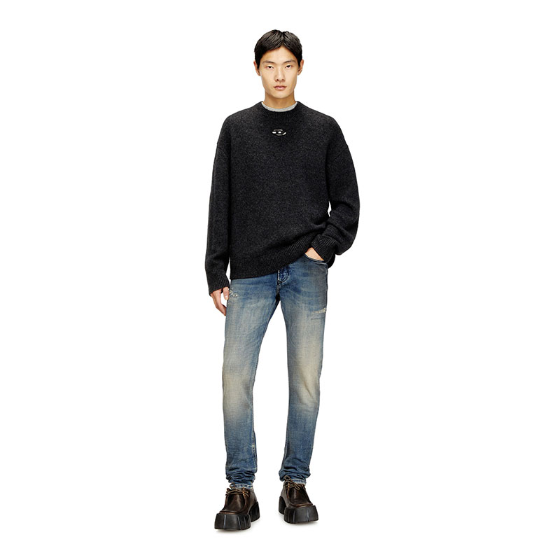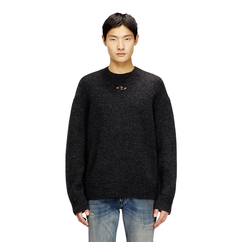 Spun from chunky yarn rich in responsibly sourced wool and alpaca, this men’s sweater is soft, warm, and built on a classic silhouette. An embroidered cut-out of the iconic Oval D logo disrupts the front, adding an unconventional Diesel twist.