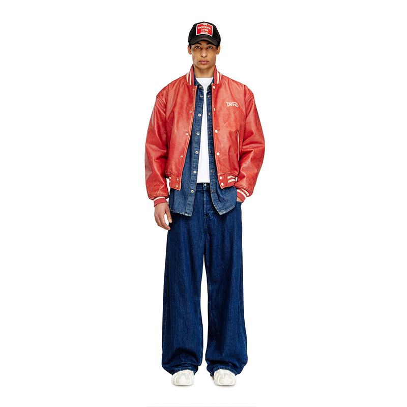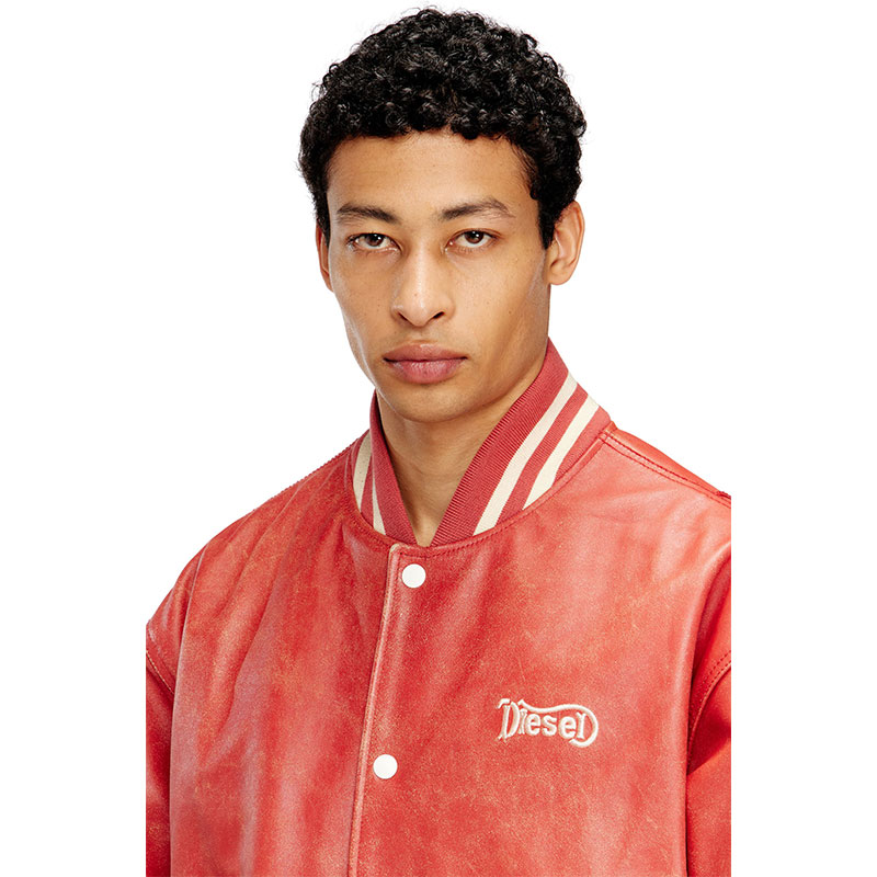 Diesel Men Leather bomber jacket with Diesel logo Red P016930SPFF