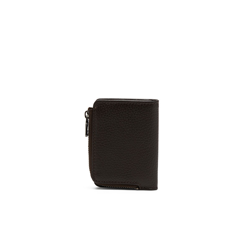 Men’s bi-fold card wallet crafted from grainy leather, featuring a snap-button fastening and a zipped pocket for coins. This accessory is simply embellished with a tonal Oval D plaque on the front.