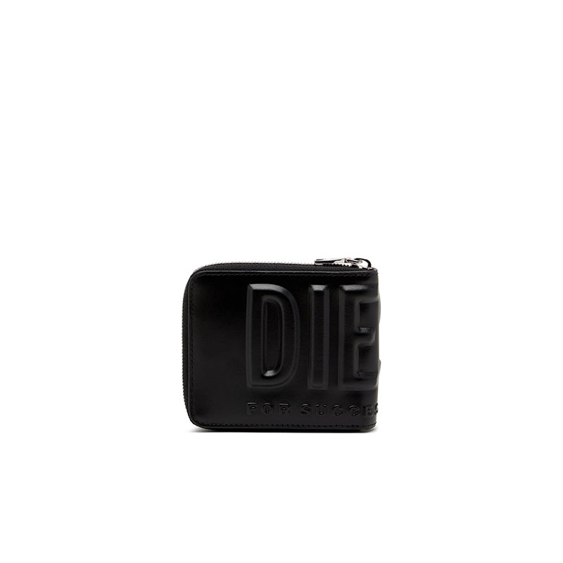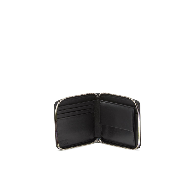 Men’s compact wallet in butter-soft nappa leather, embossed with a jumbo version of the Diesel Biscotto logo. Fastening with a secure all-around zip, this accessory can accommodate cards and notes and has a pocket for coins.