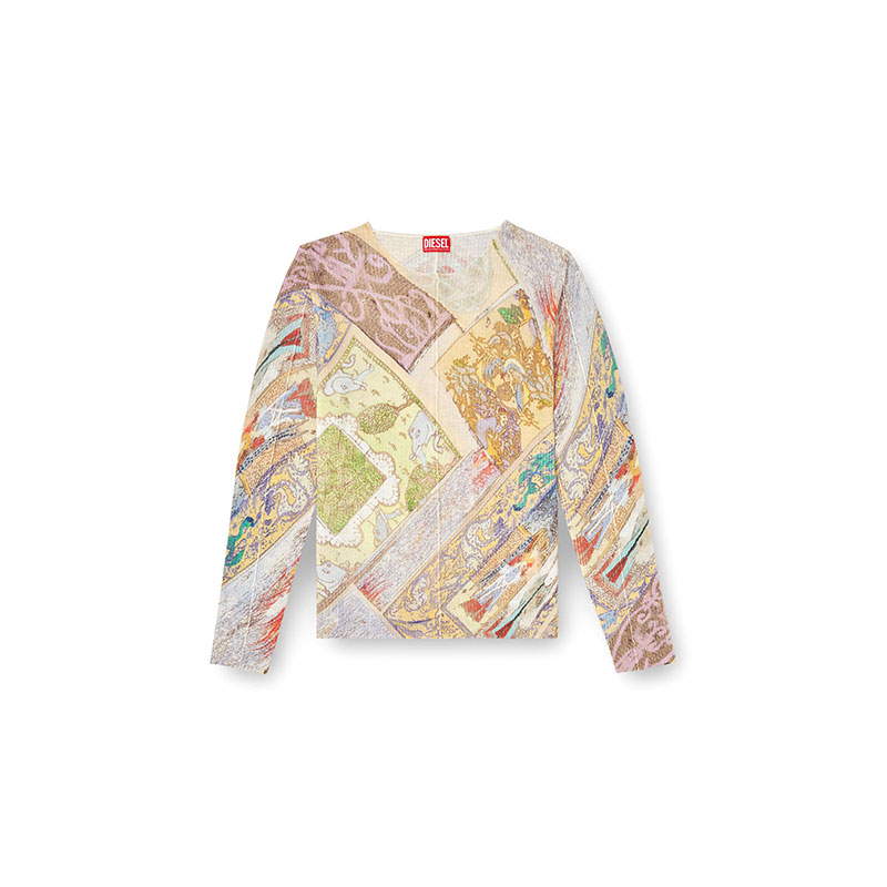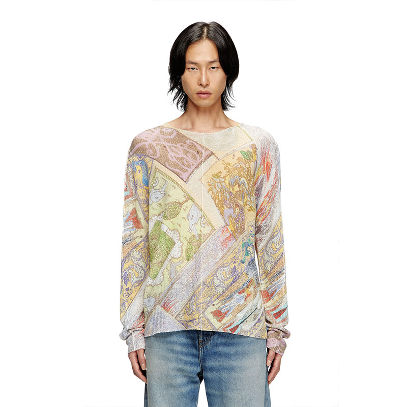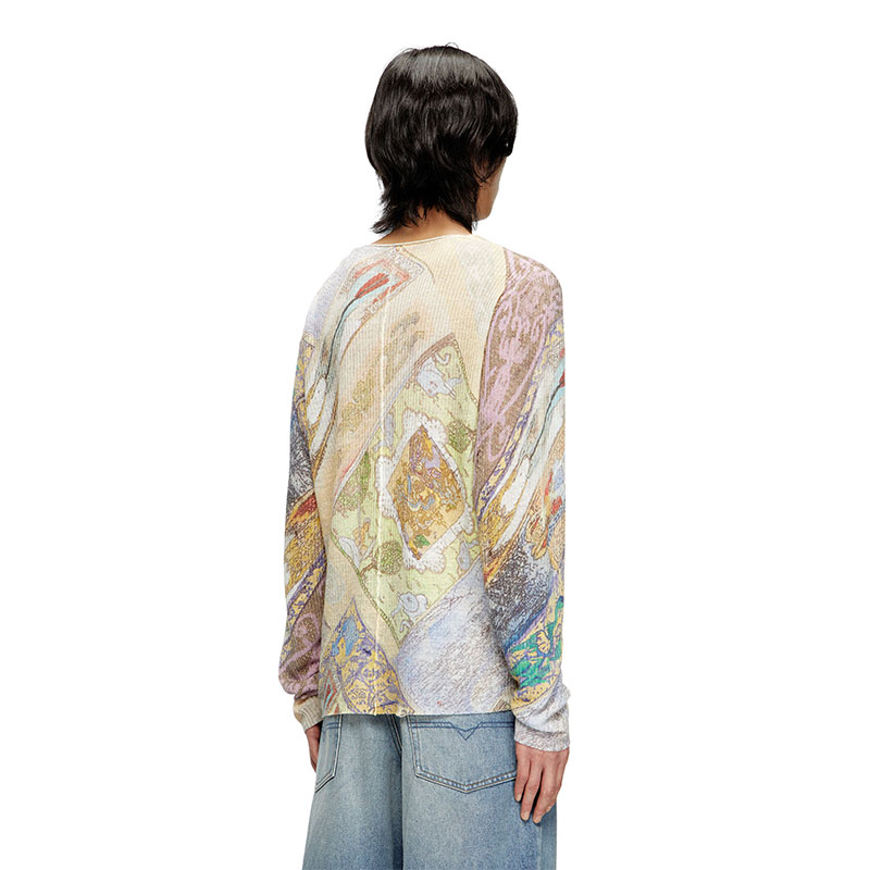 Men's rib-knit sweater crafted from 100% low-impact linen. Part of a creative collaboration with an artist, this style features a regular fit and medieval-inspired artwork in muted multicolour tones.