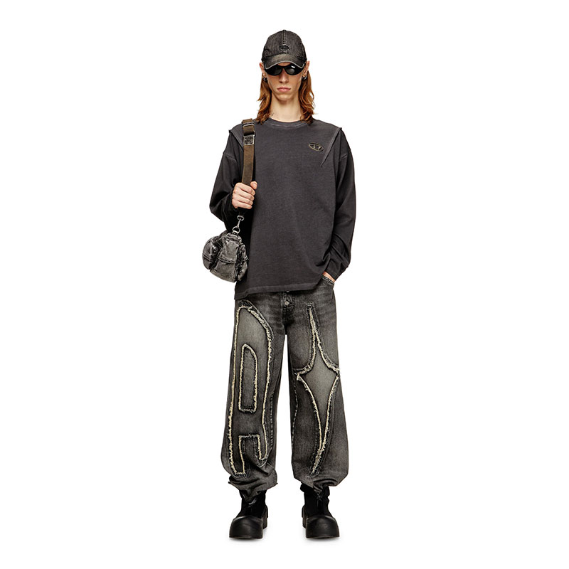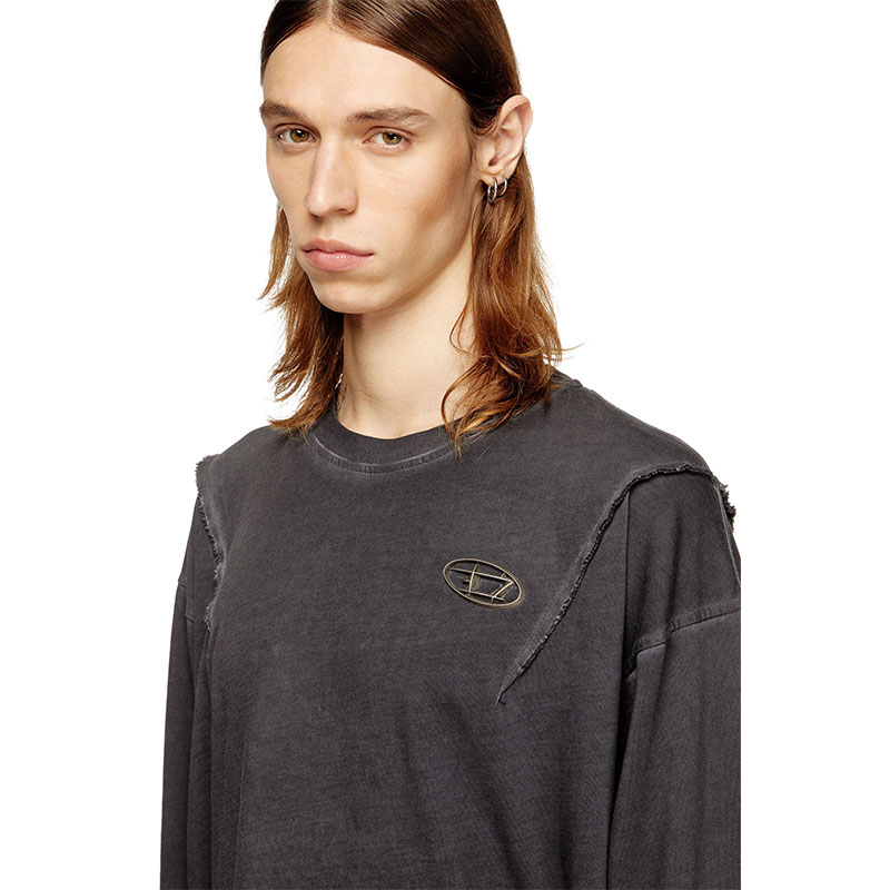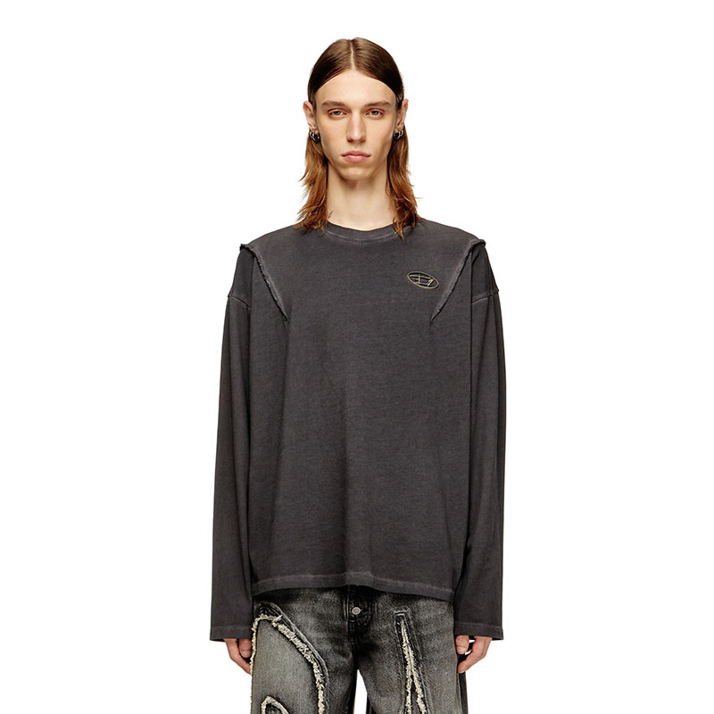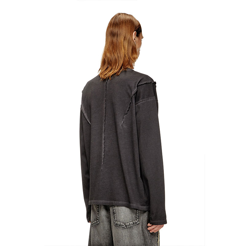 Diesel joins forces with Thug Club — a Seoul-born label turned global streetwear power. The union forges an eight-piece capsule alive with underground energy, defiant in spirit and fearless in expression. Part of the collection, this unisex long-sleeve tee in cotton jersey has a roomy cut and an effortless, lived-in fade. Over the shoulders and down the back, tactile raw seams disrupt the silhouette with a deconstructed edge. The collection's exclusive co-branding hallmarks the chest.