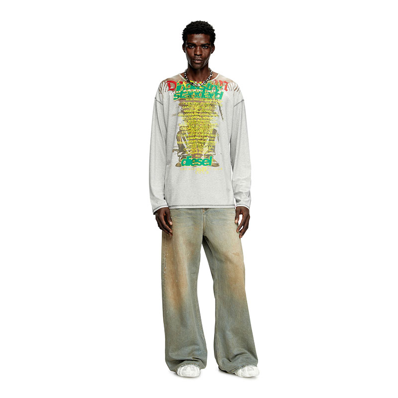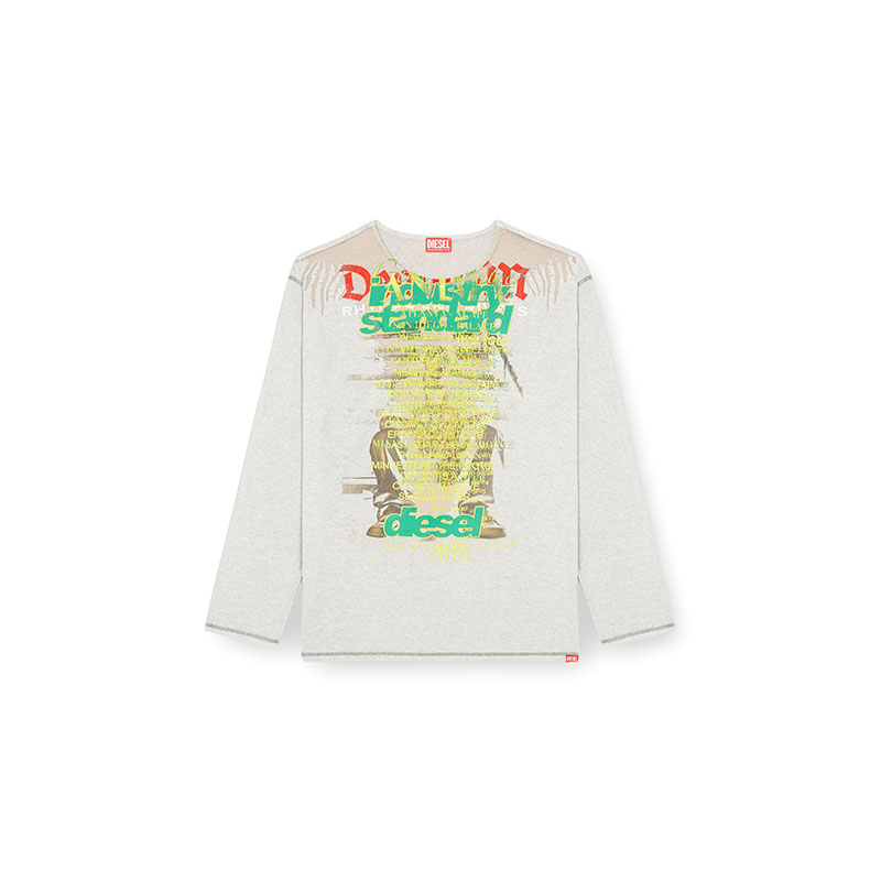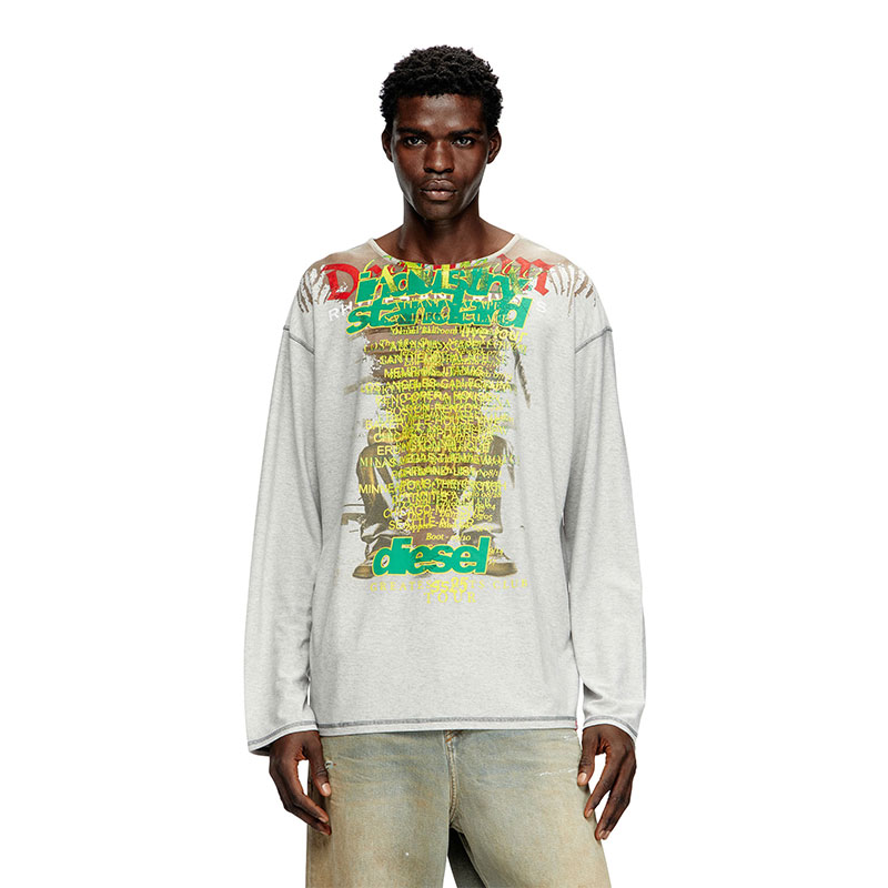Diesel Men Long-sleeve T-shirt with lyrics print Grey A197330JLBR