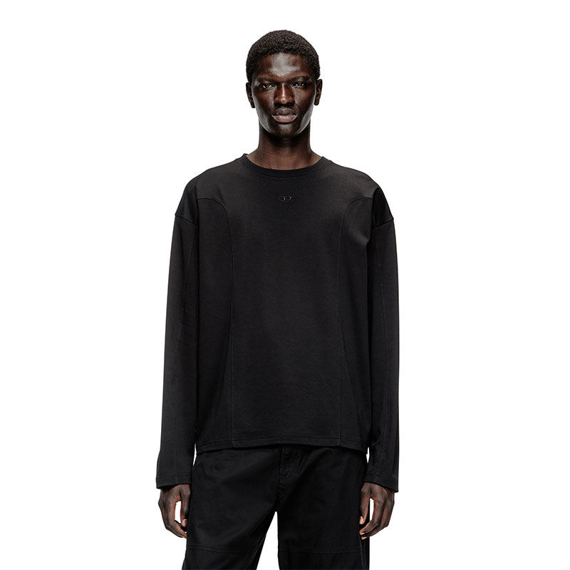 Curved inlays elevate the relaxed lines of this men's long-sleeved tee with fluidity and structure in equal parts. Made from certified organic cotton jersey, it features an Oval D logo on the chest, embroidered in tonal yarn for a subtle finish.