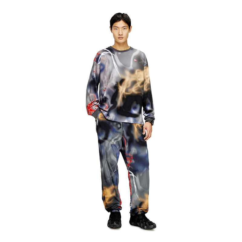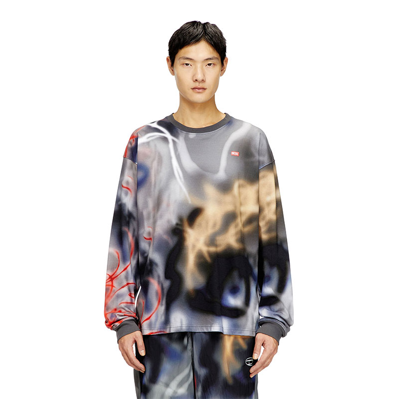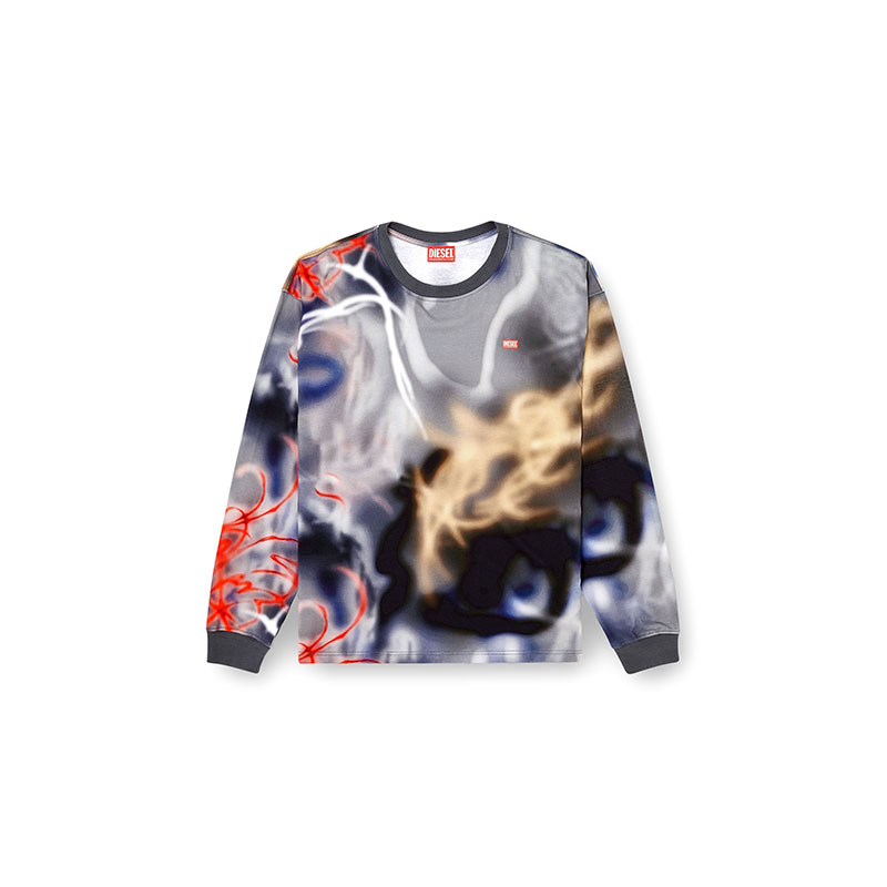 Echoing the graphic motifs of the FW25 Runway Show, this men's long-sleeve t-shirt is crafted from lightweight single jersey made with 100% organic cotton with a fresh feel. Effortlessly wearable, it's printed all-over with graffiti-effect light streaks, and features a small Diesel “biscotto” logo on the chest – a subtle iconic touch.