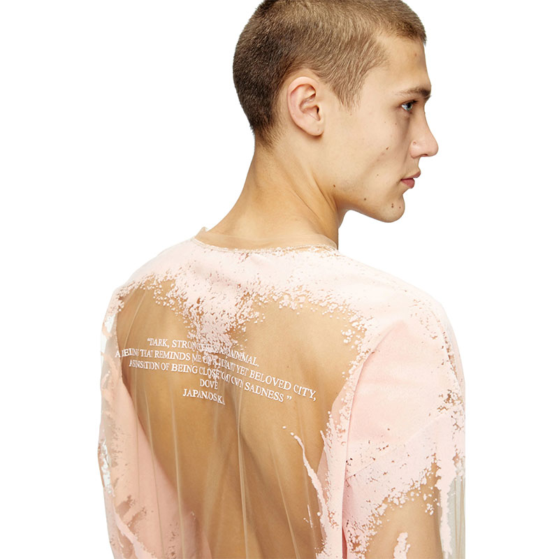 Men's long-sleeved T-shirt made from technical fabric designed to be see-through on most of the garment. This crewneck tee is featured in the Remaster collection, a celebration of the underground club scene and Diesel's long-standing alliance with the DJ community. Each piece is printed with custom graphics or quotes chosen by DJs participating in the project as a personal tribute to the music that changed their lives.