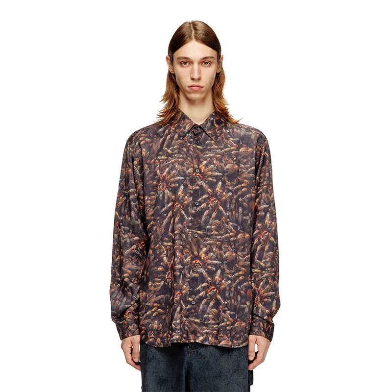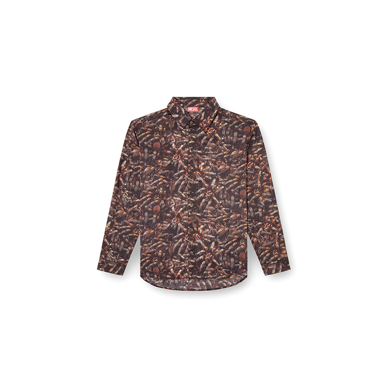 Shirt in lyocell with classic collar and long sleeves. The all-over graphic print features spiders as the subject. Four-hole buttons on the front and cuffs ensure practicality and attention to detail.