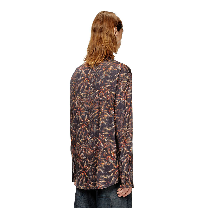 Shirt in lyocell with classic collar and long sleeves. The all-over graphic print features spiders as the subject. Four-hole buttons on the front and cuffs ensure practicality and attention to detail.