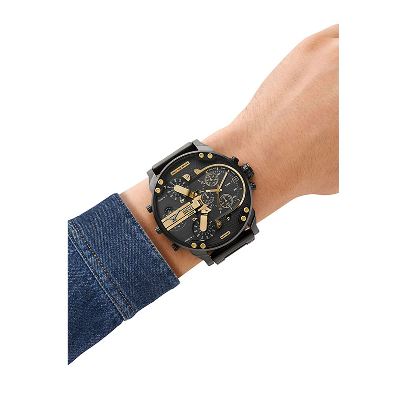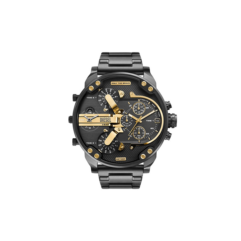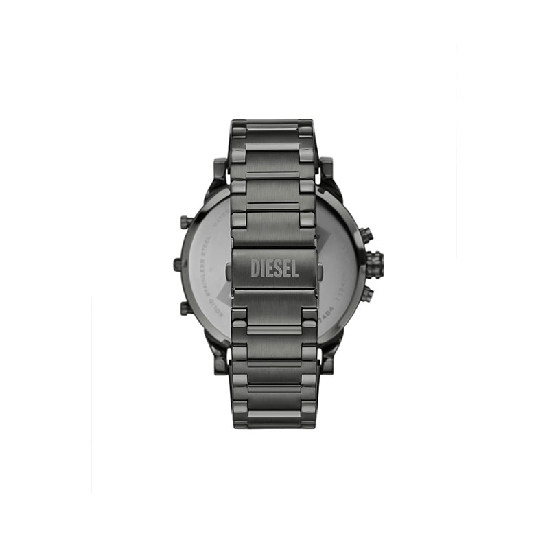 Diesel's 57mm Mr. Daddy watch features a gray textured dial, chronograph movement with multiple time setting movement functions and gunmetal stainless steel bracelet.