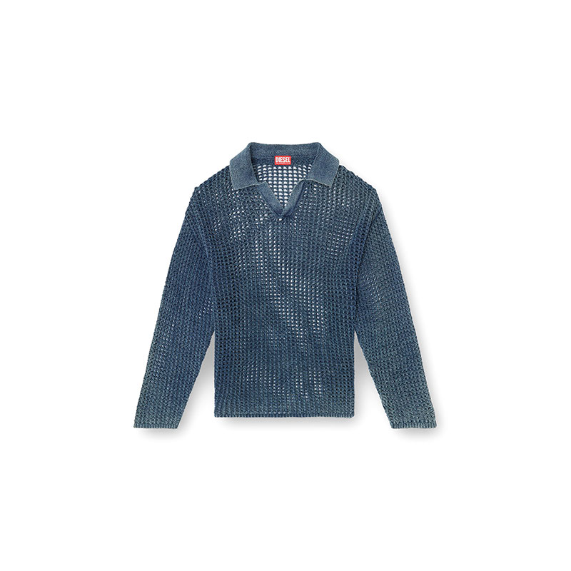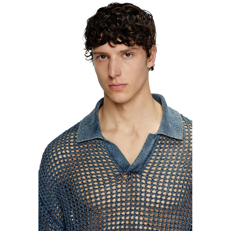 Diesel Men Open-knit polo jumper in denim yarn Blue A175340CBDP