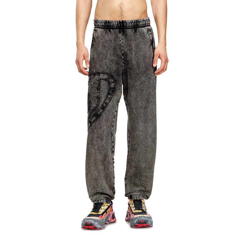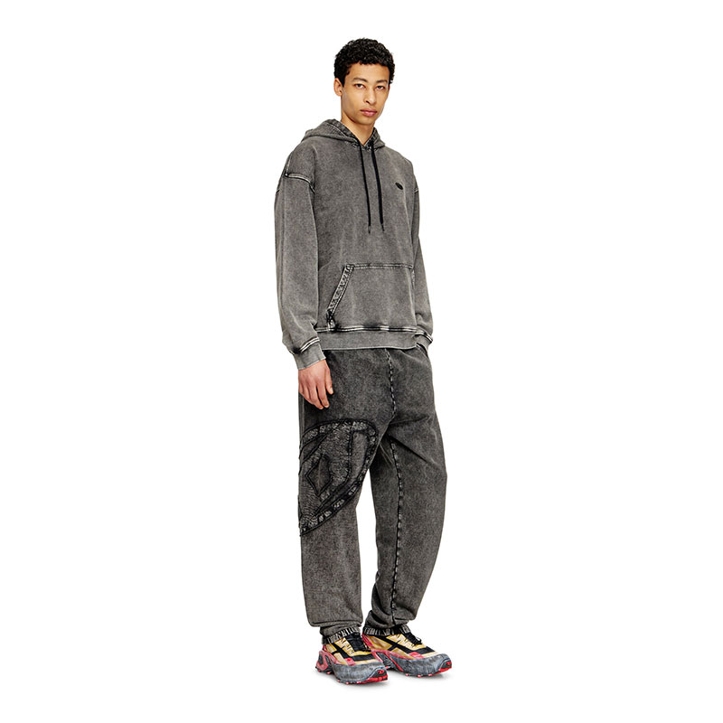 These regular-fit sweatpants are crafted from organic cotton fleece. Featuring an elastic waistband with an internal drawstring and elaticaed leg cuffs for comfort, they're fitted with front welt pockets and a single back pocket. The fabric is garment dyed, with an acid wash creating a uniquely nuanced finish. The maxi Oval D application on the right leg, finished with raw edges, and the small Oval D embroidery below the front left pocket complete the style.