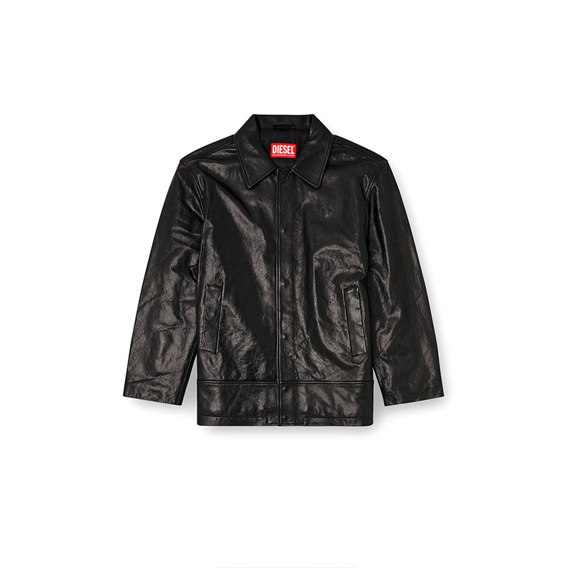This men’s jacket is crafted from supple leather that has been sourced responsibly. Lightly padded for insulation, it features a clean, minimal profile with a classic pointed collar and hidden snap fastenings down the front. An embossed Oval D logo hallmarks the sleeve.