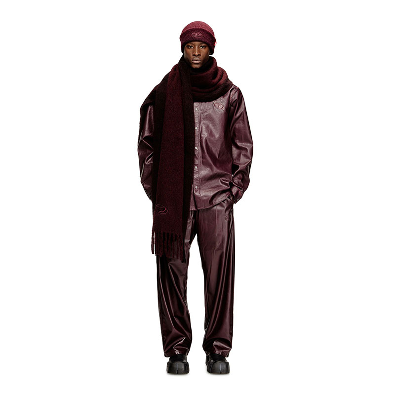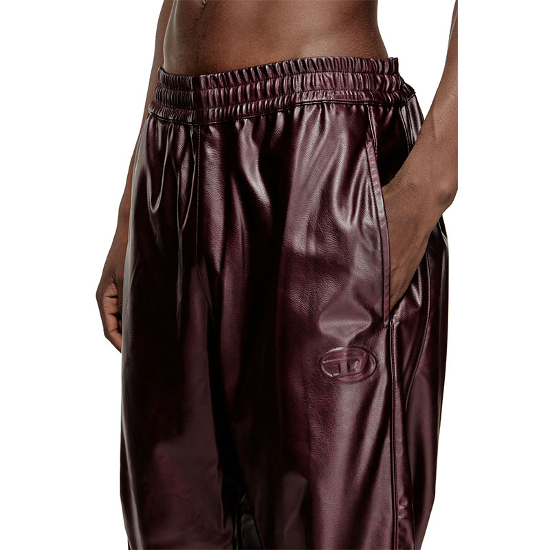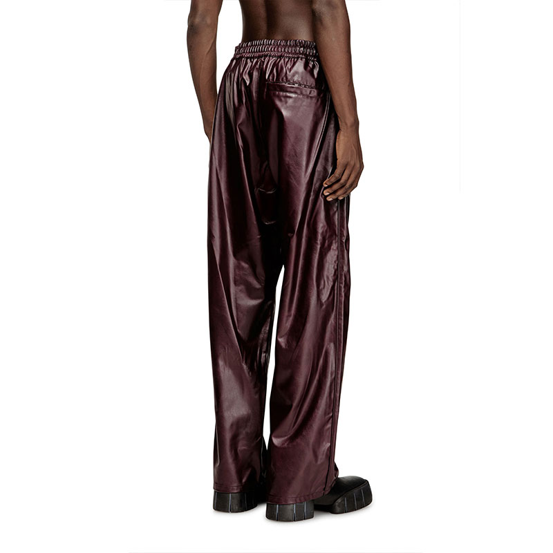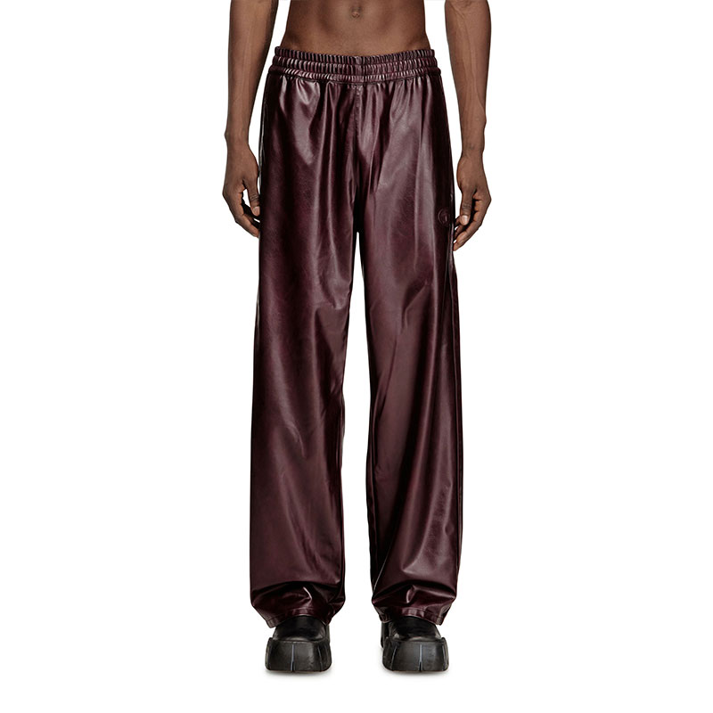 These men’s pants are crafted from burgundy coated fabric, offering a unique, smooth texture that feels a bit like leather for a sleek riff on sportswear codes. The straight leg silhouette is enhanced with piping at the sides and an embossed Oval D logo. Use the drawstring to adjust the elasticated waist.
