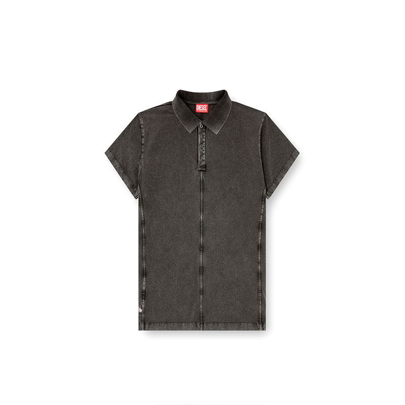 This men’s jersey polo shirt is a fresh twist on Diesel’s iconic fabric, featuring a slim, panelled design that tricks the eye into thinking it’s faded black denim. Our signature fifth-pocket flag adorns the side.