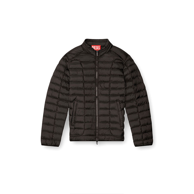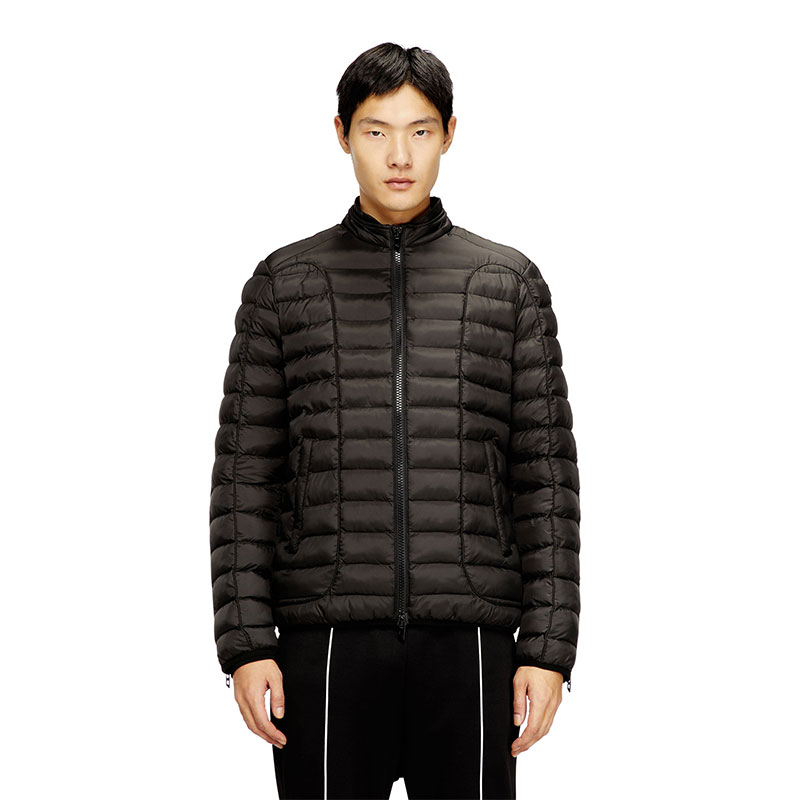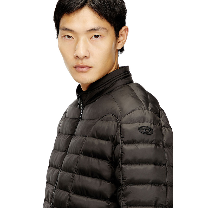 This men's quilted jacket is crafted from super light shell fabric in 100% recycled polyester, and padded for warmth. Finished with a logo zip puller and a subtle embroidered Oval D on the sleeve.