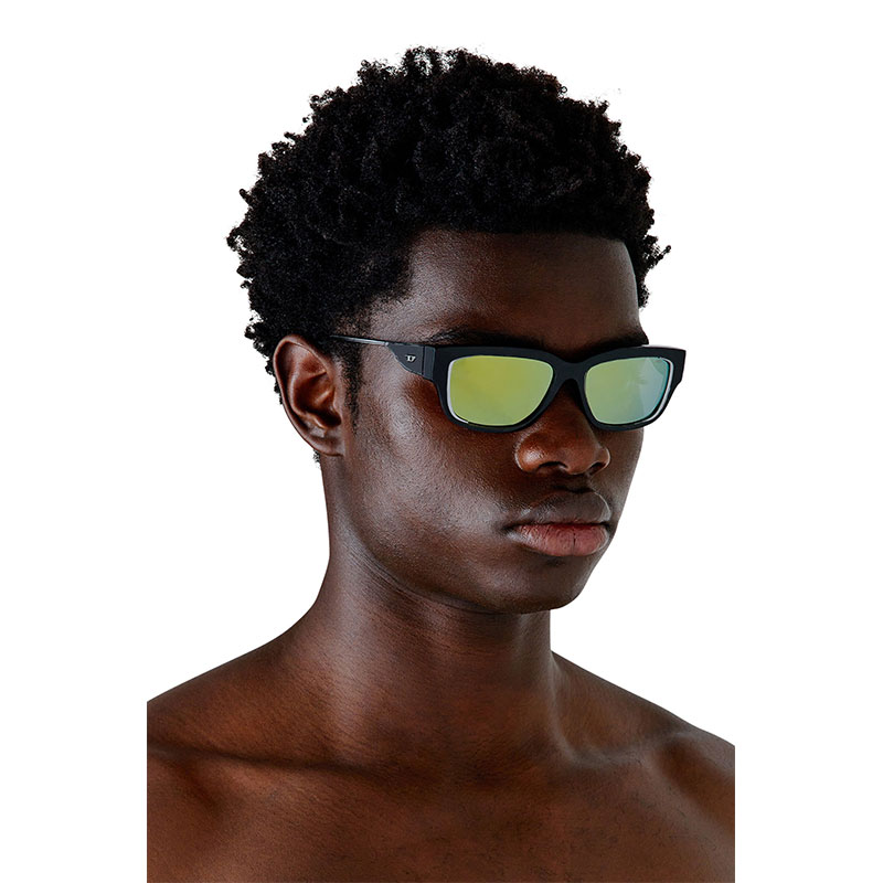 This ultra-wearable style is a mix of essential lines and Diesel's industrial DNA. Smooth acetate creates the rectangular front, while metal brackets amplify lenses with a 3D-effect. An acetate logo plaque adds a geometric edge to double wire temples in shiny gunmetal, shiny silver or brushed gunmetal.