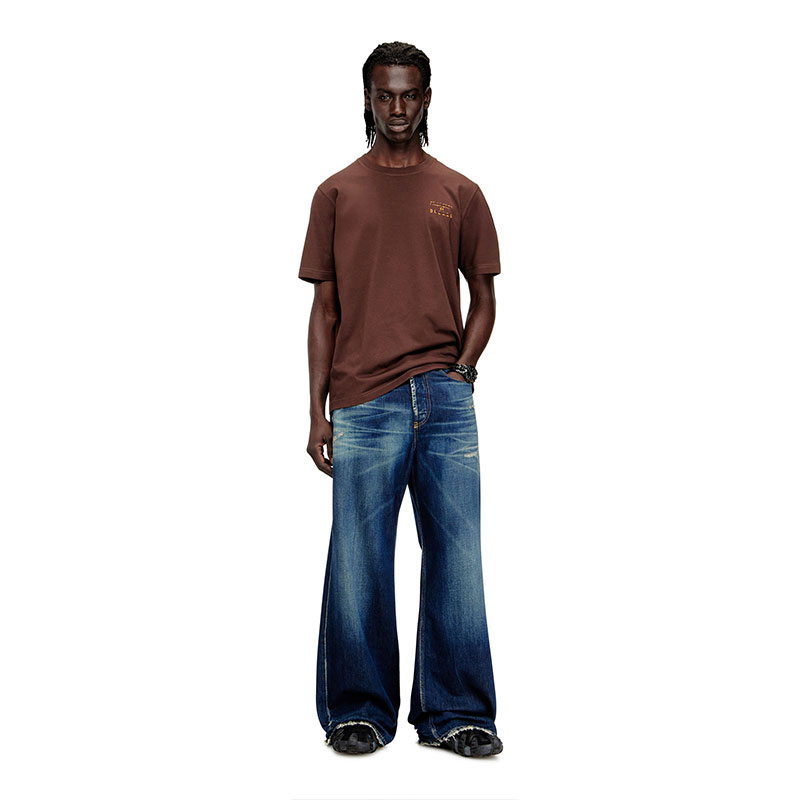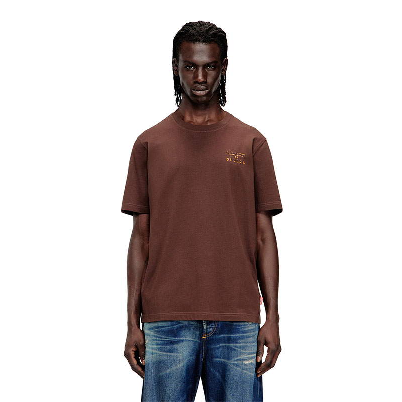 Regular fit T-shirt with crew neck and short sleeves, crafted from light cotton jersey made using organic cotton. The water-based lettering on the chest is enriched by a puff-print "D" detail, and finished with a Diesel flag label positioned on the left side seam.