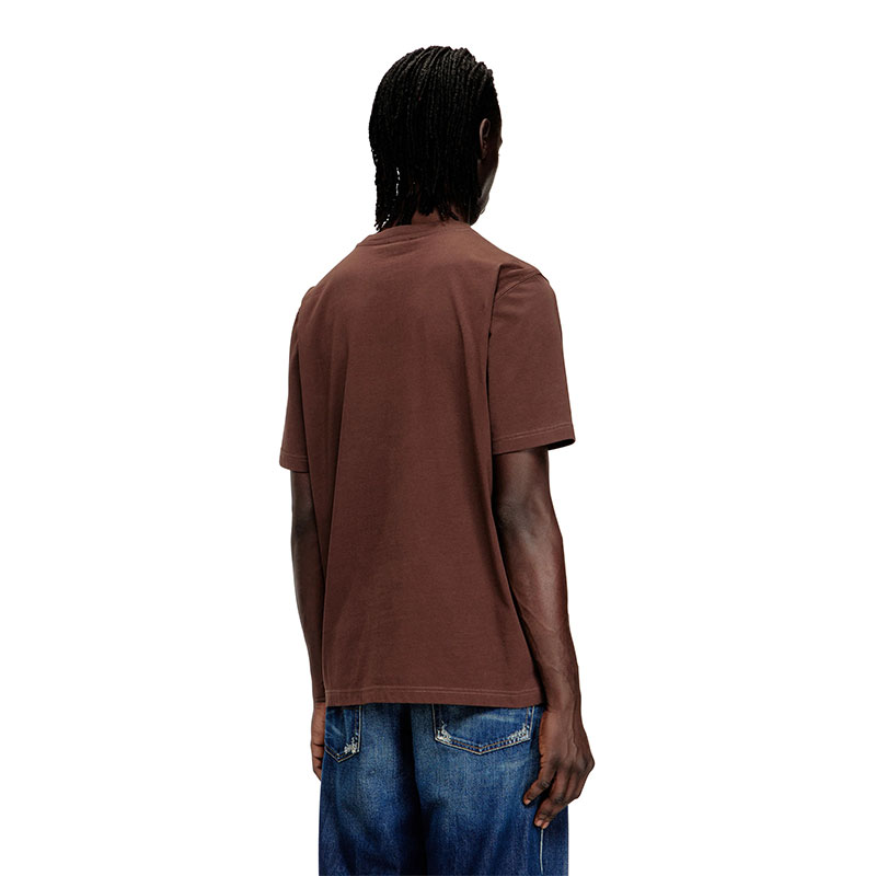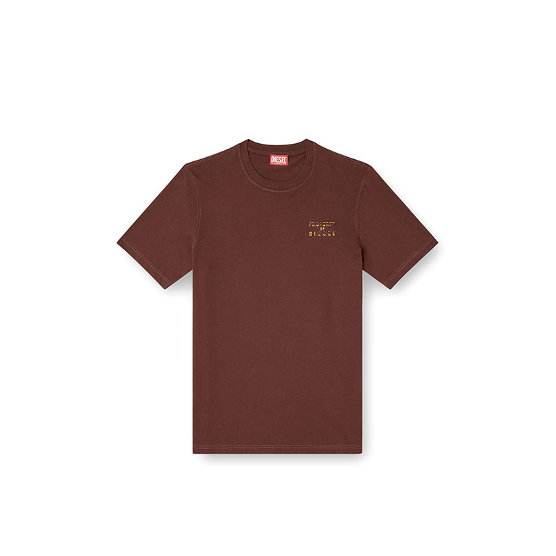 Regular fit T-shirt with crew neck and short sleeves, crafted from light cotton jersey made using organic cotton. The water-based lettering on the chest is enriched by a puff-print "D" detail, and finished with a Diesel flag label positioned on the left side seam.