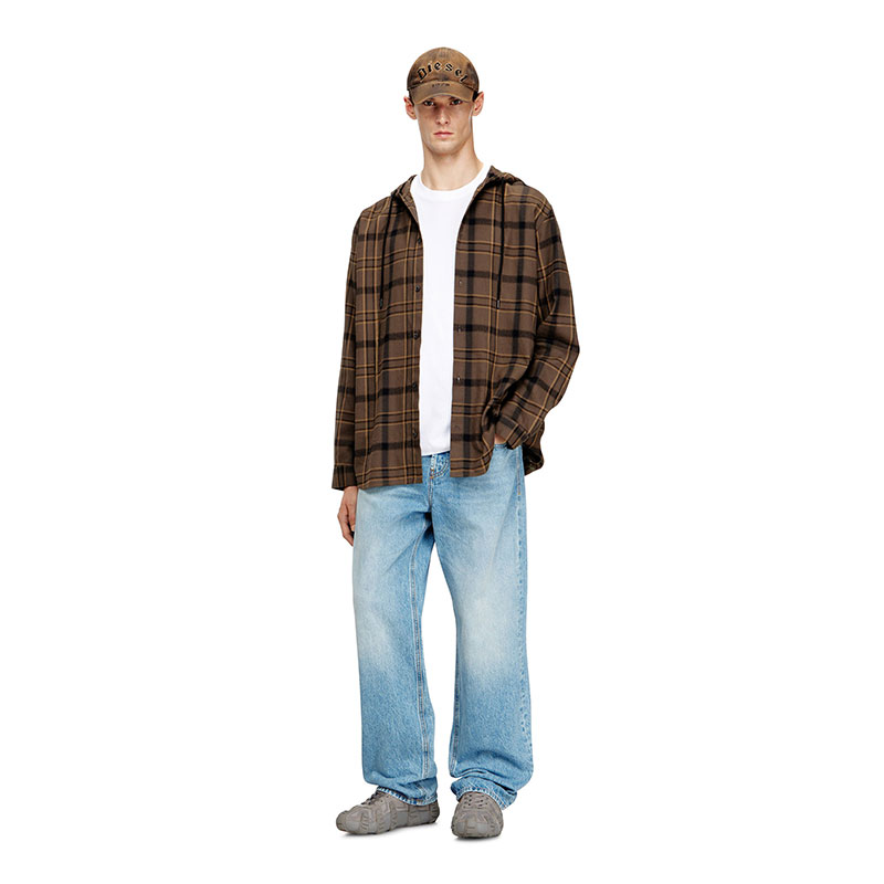 Regular fit T-shirt with crew neck and short sleeves, crafted from light cotton jersey made using organic cotton. The water-based lettering on the chest is enriched by a puff-print "D" detail, and finished with a Diesel flag label positioned on the left side seam.