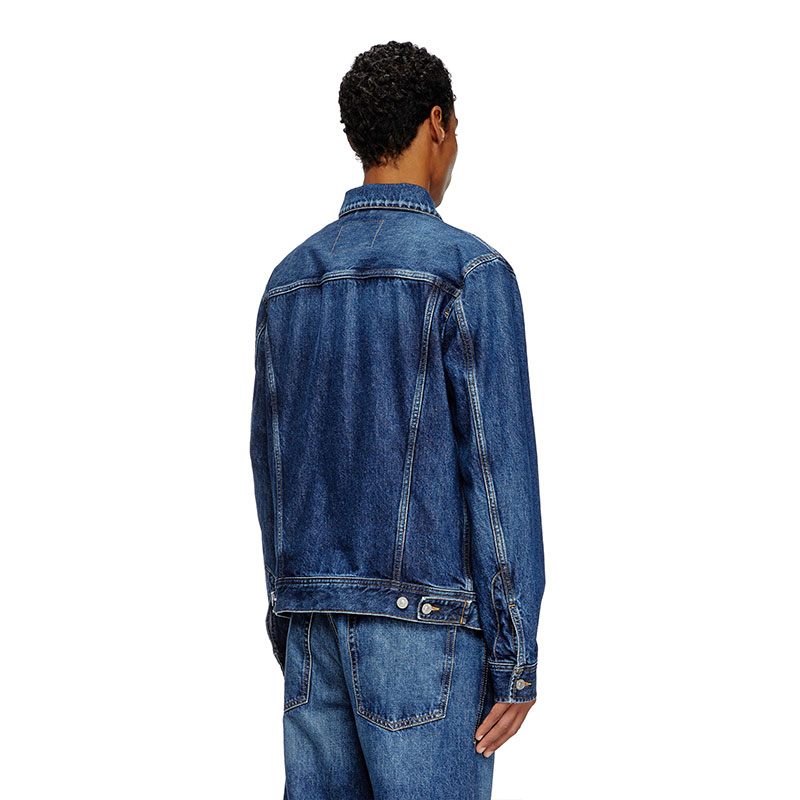 Denim trucker jacket, cut for a regular fit and subtly embellished with a red embroidered D logo.