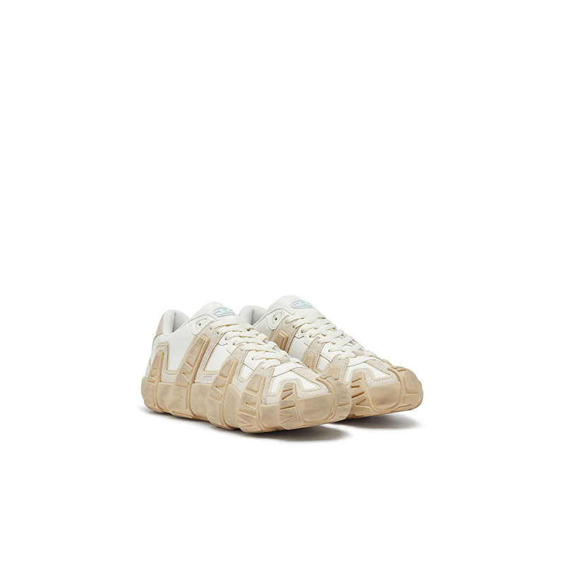 Low lace sneakers made from reinforced technical nylon paired with suede. It features leather reinforcements around the lace area for added durability and a contrast of materials that highlights the shape. An aged effect is added through a special treatment applied to the finished product.