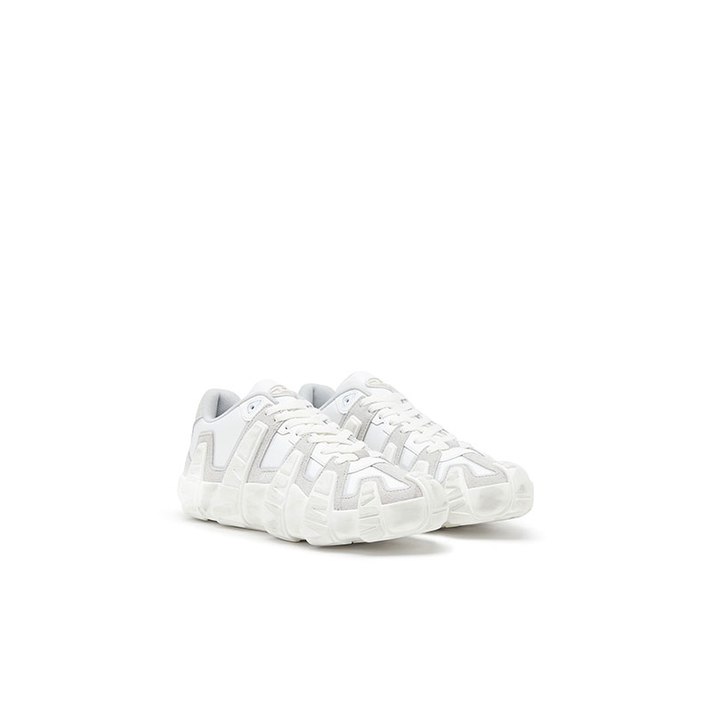 Low lace sneakers made from reinforced technical nylon paired with suede. It features leather reinforcements around the lace area for added durability and a contrast of materials that highlights the shape. An aged effect is added through a special treatment applied to the finished product.