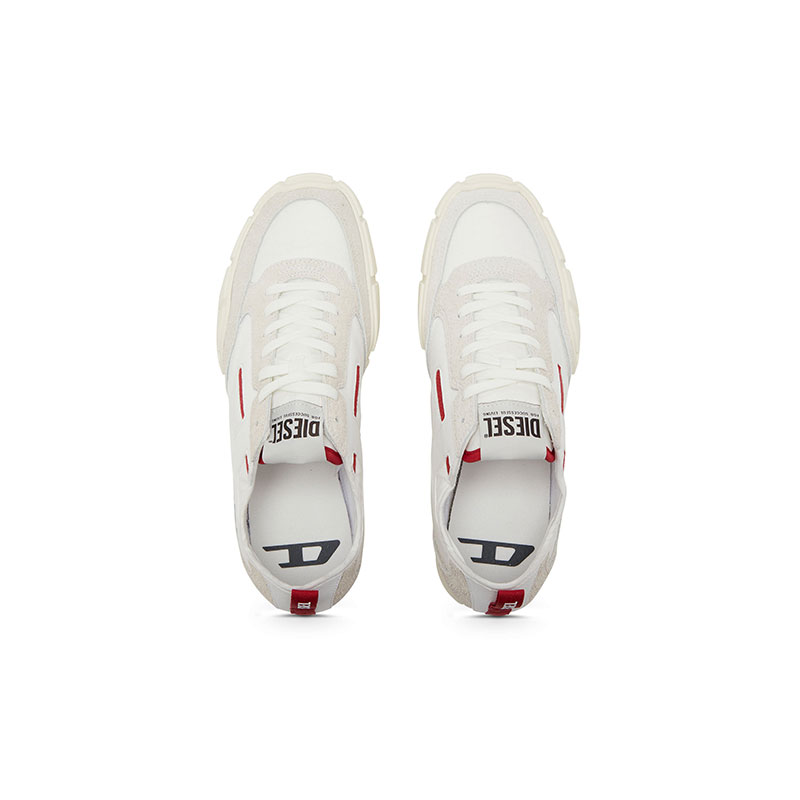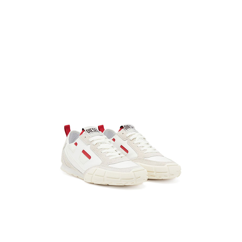 Diesel Men S-Pagodha-Sneakers in leather, suede and ripstop White/Red Y03644P8404