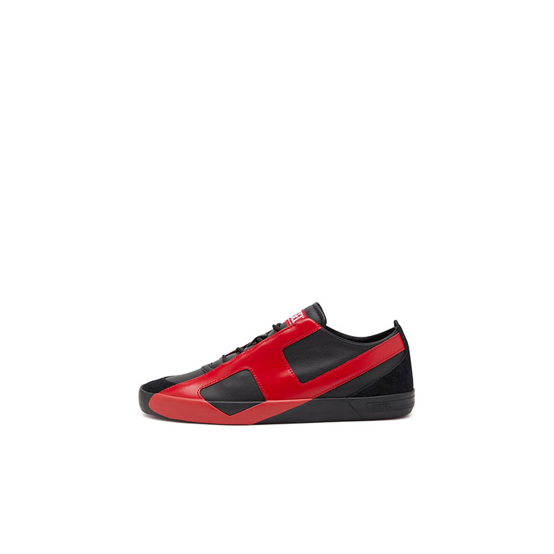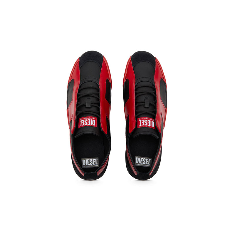 Diesel Men S-Slante-D-Sneakers in suede and leather with D logo Black/Red Y03656PR131