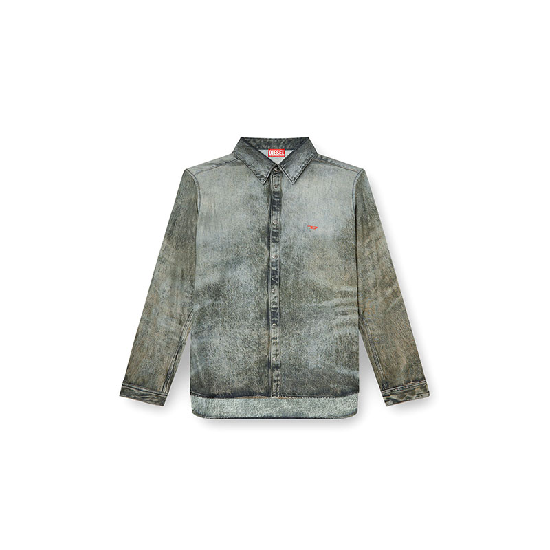This men's regular-fit shirt is an ode to Diesel's DNA, printed to mimic marbled black denim. The viscose fabric has a fluid drape, made from half responsibly-sourced and half ECOVERO fibres. Hallmarked with a printed D initial on the chest.