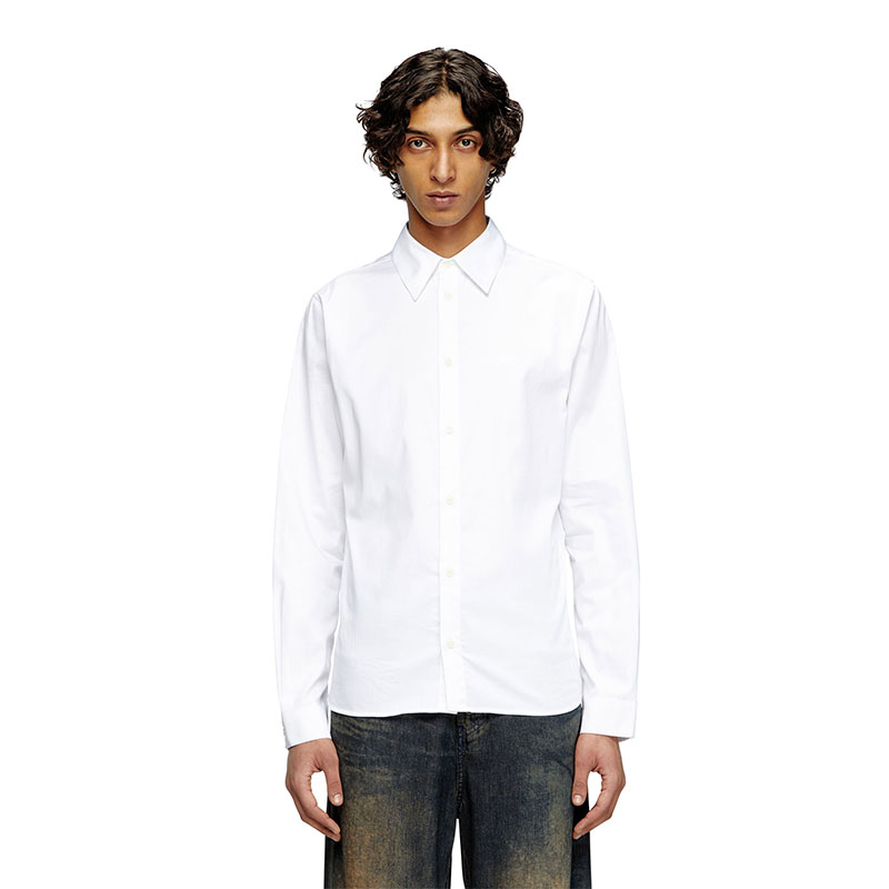 This men's long-sleeve shirt is made from crisp poplin fabric, spun from organic cotton and a hint of stretch. Its slim silhouette is branded with an embroidered Oval D in tonal yarn on the left chest.