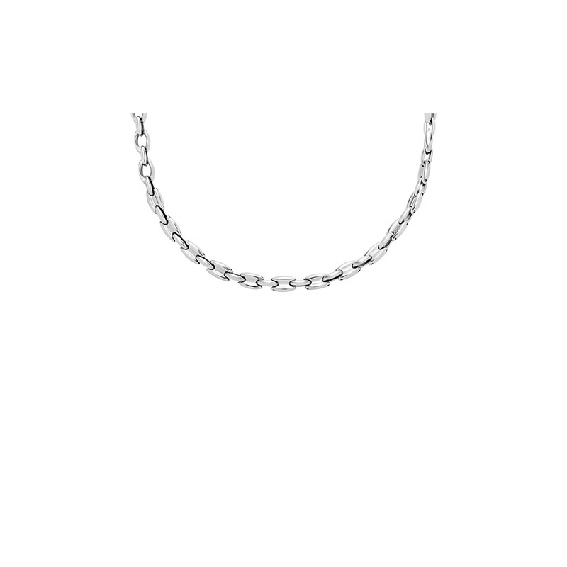 Diesel's stainless steel chain necklace ties into the organic language of the Metamorph watch collection. Offered in a silver color, this necklace features a custom chain design and a lobster clasp closure. A unique piece to add to your jewerly collection!