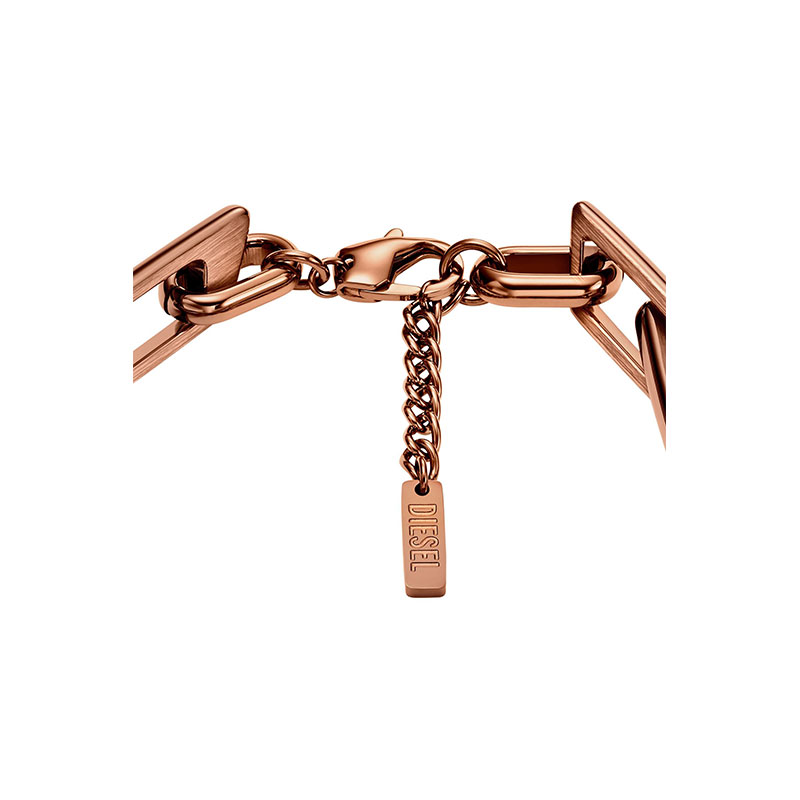 Diesel's bronze-tone chain bracelet features plated Stainless steel and Diesel's barbed D-logo interlocking links, finished with a lobster closure.
