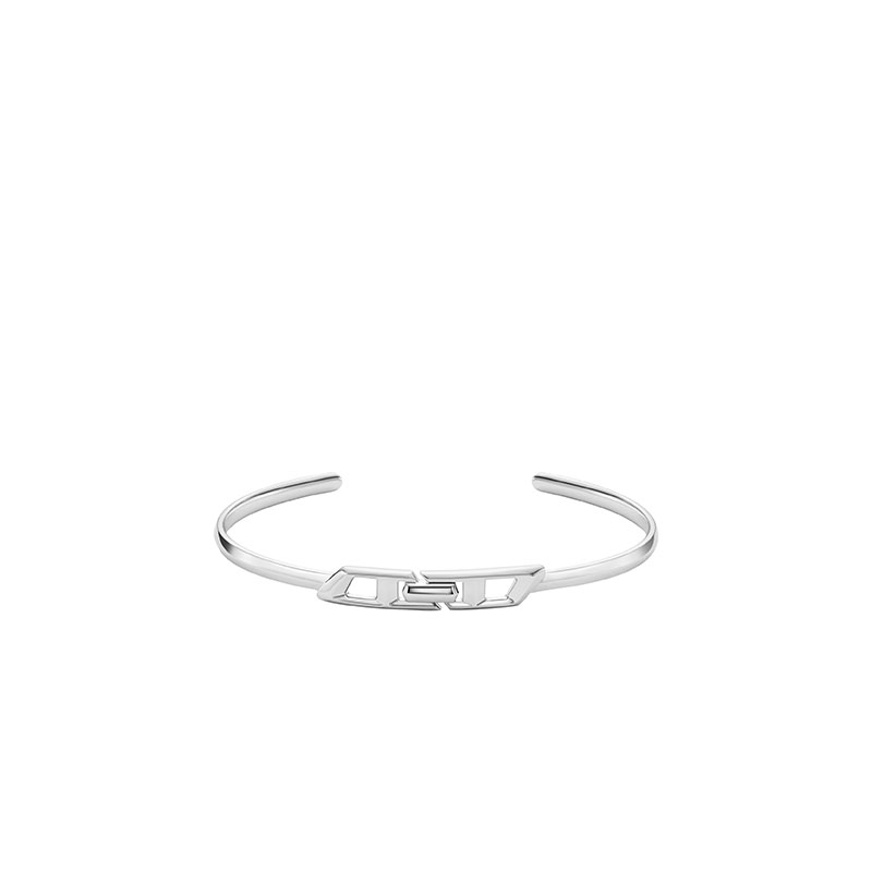Diesel's sterling silver cuff bracelet is crafted with a minimalist design showcasing the iconic D logo. Made from high-quality sterling silver, this bracelet offers a timeless appeal. The open cuff design allows for easy wear and a comfortable fit. Perfect for adding a touch of elegance to any outfit.