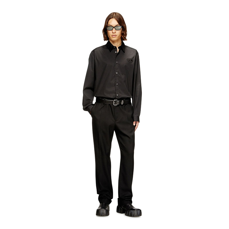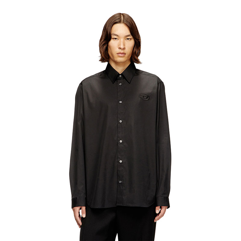 Stretch-cotton poplin shirt with four-hole button closure on the front and cuffs, crafted using organic fibres. A tonal Oval D logo embroidery adorns the left chest, adding an iconic and distinctive detail. An elegant and versatile wardrobe staple.