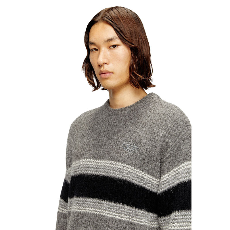 Adorned with bold stripes, this men’s sweater serves up street-edge cool. It’s rib-knitted from a wool-rich alpaca blend in a relaxed, loose fit. Take a closer look to spot the tonal Oval D logo embroidered on the chest.