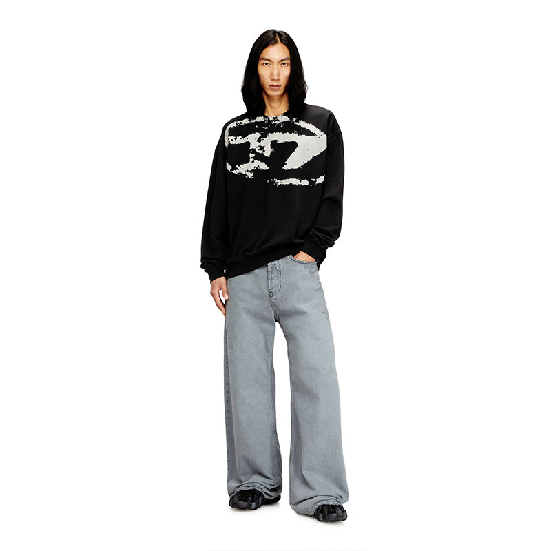 Diesel Men Sweatshirt with distressed flocked logo Black A130510DQAK