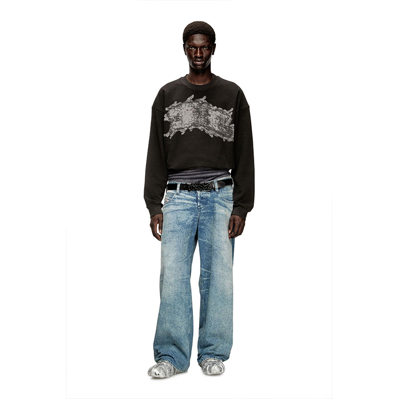 This men's sweatshirt is an exclusive FW25 Runway Show piece. Crafted using organic cotton and a percentage of recycled fibres, it features a relaxed fit and a lived-in washed finish. The 'DSL' graphic print on the chest takes cues from the show's unconventional graffiti setting: a giant installation spanning 3 kilometres of painted fabric.