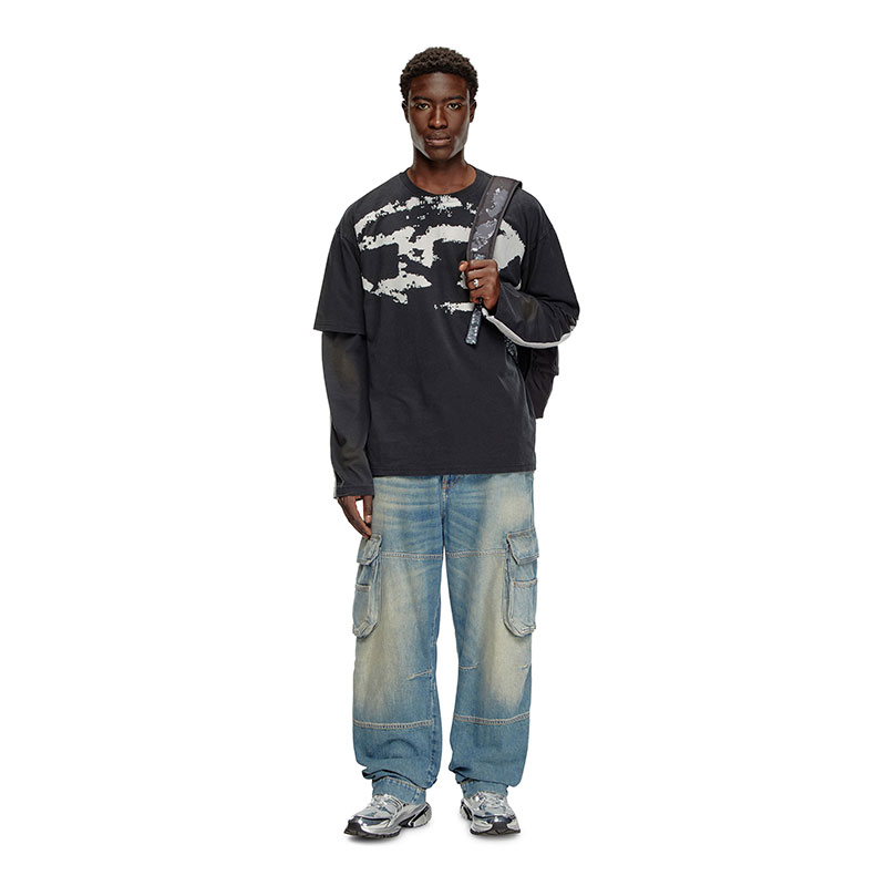 This men's T-shirt has a relaxed fit and a mega-large Oval D logo blasted over the front – the branding is flocked in a way that mimics natural distressing from years of wear. It's cut from cotton jersey with a distinctive raw hand feel and lived-in appearance.