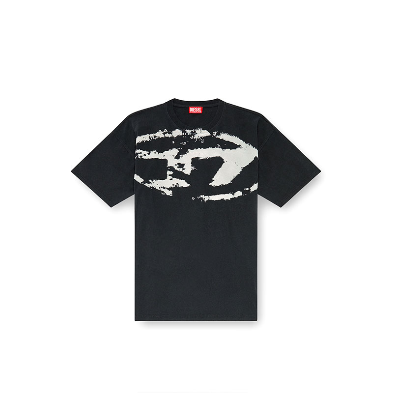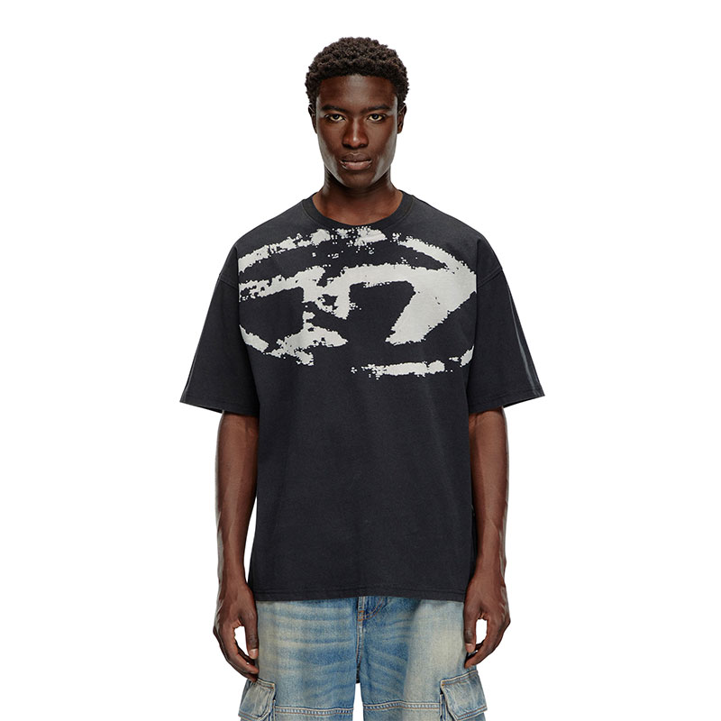 Diesel Men T-shirt with distressed flocked logo Black A130490DQAU