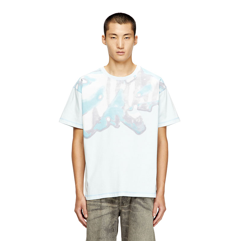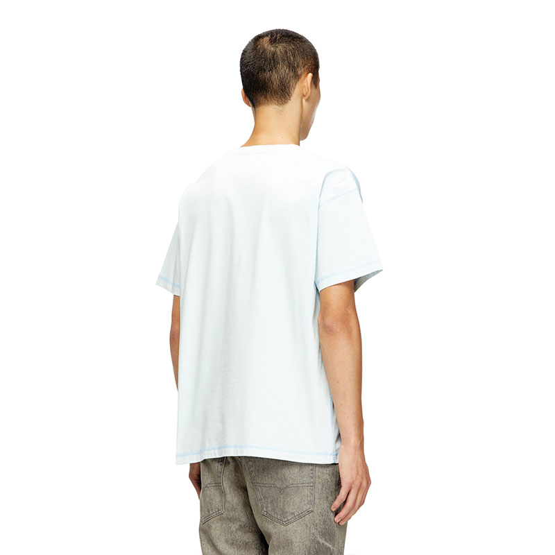 This exclusive men's tee from the FW25 Runway Show is crafted using a high percentage of organic cotton. Designed to look as though it's been flipped inside out, it's detailed with contrast overlock stitching and features a faded print on the front – the graphic is a wearable nod to the Diesel Show's chaotic setting that transformed the conventional catwalk into a colossal graffiti installation.