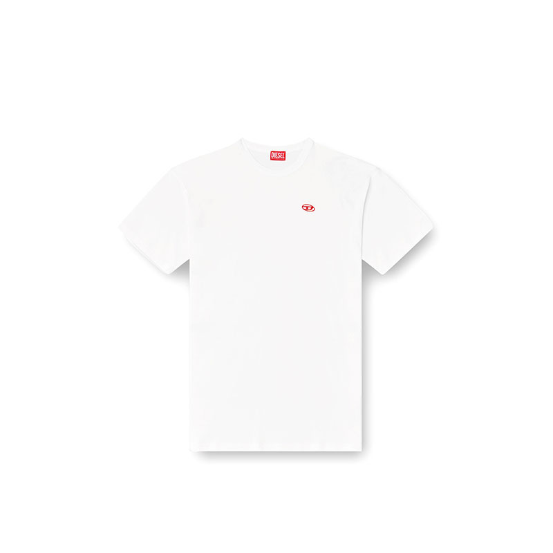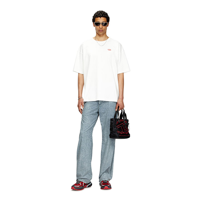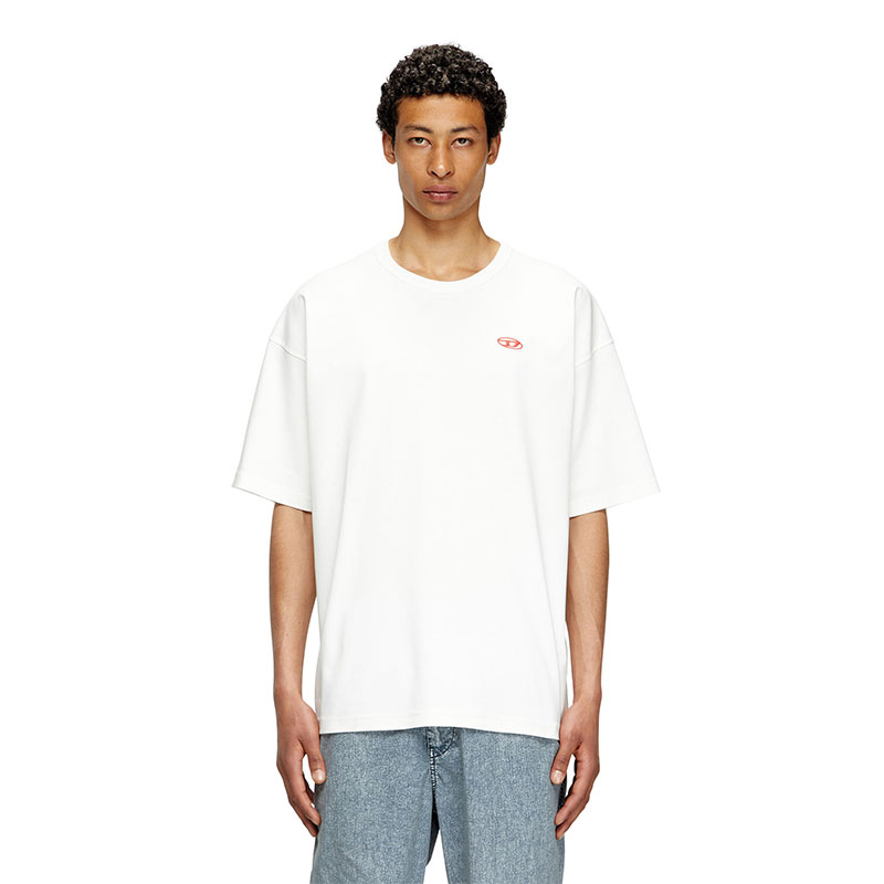 This men's tee is built from interlock jersey woven from 100% organic cotton. The fit is relaxed with dropped shoulders. A red embroidered Oval D adorns the chest.
