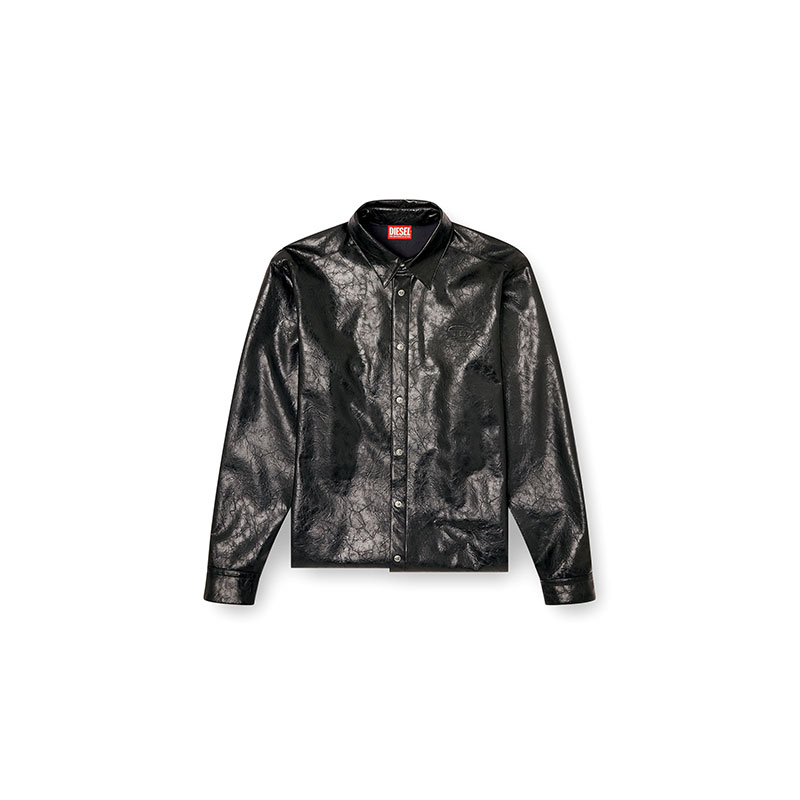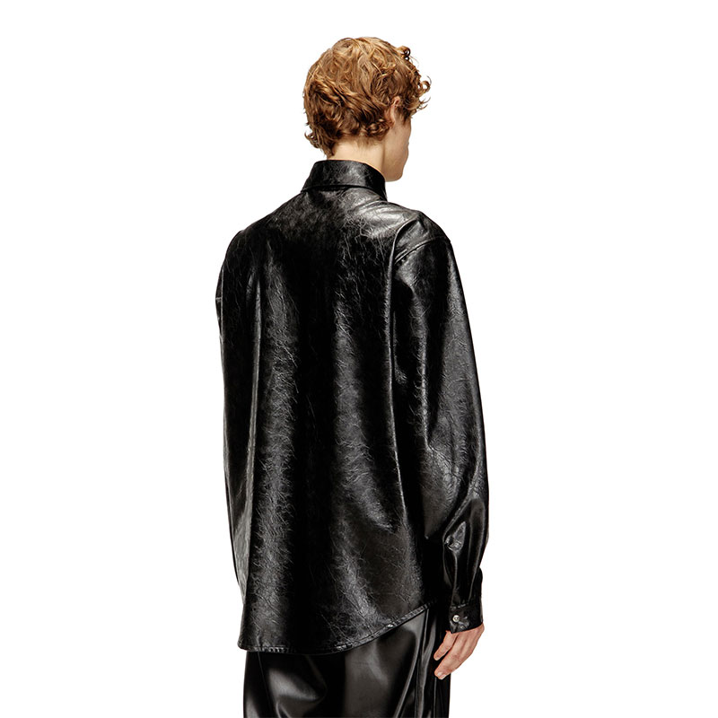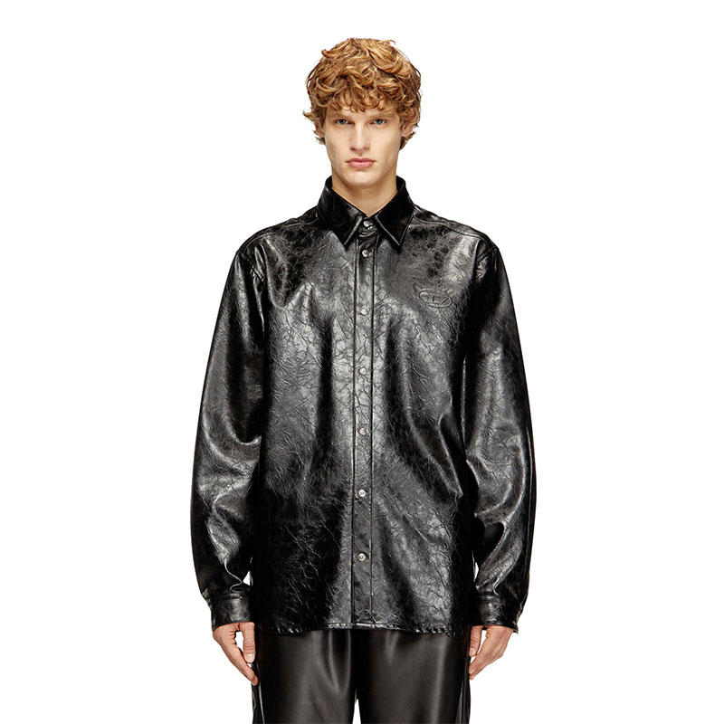 Long-sleeve shirt made from coated viscose fabric, with a textured finish that mimics the look and feel of vintage leather. Featuring branded snap buttons on the front and cuffs. It boasts the distinctive Oval D logo embossed on the left side of the chest. This shirt offers a bold look complemented by a classic cut and contemporary details.