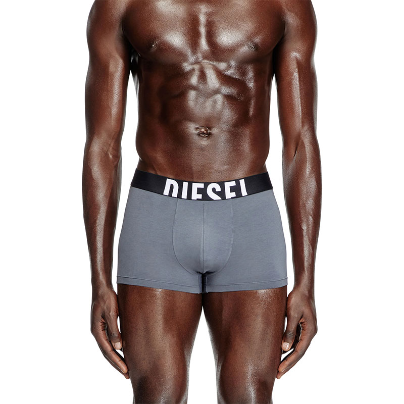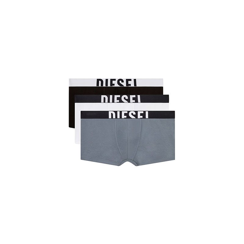Three-pack of men's boxer briefs cut from pure stretch cotton. Each pair features a contrasting jacquard waistband, with a maxi cut-off Diesel logo across the front.