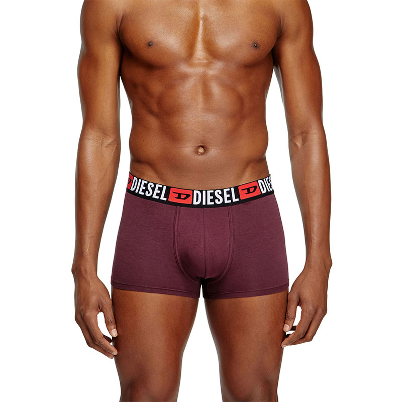Three-pack of plain stretch cotton boxer briefs in assorted colours. Each pair features an elasticated jacquard waistband with an all-over Diesel Denim Division logo. Seamless back for enhanced comfort.