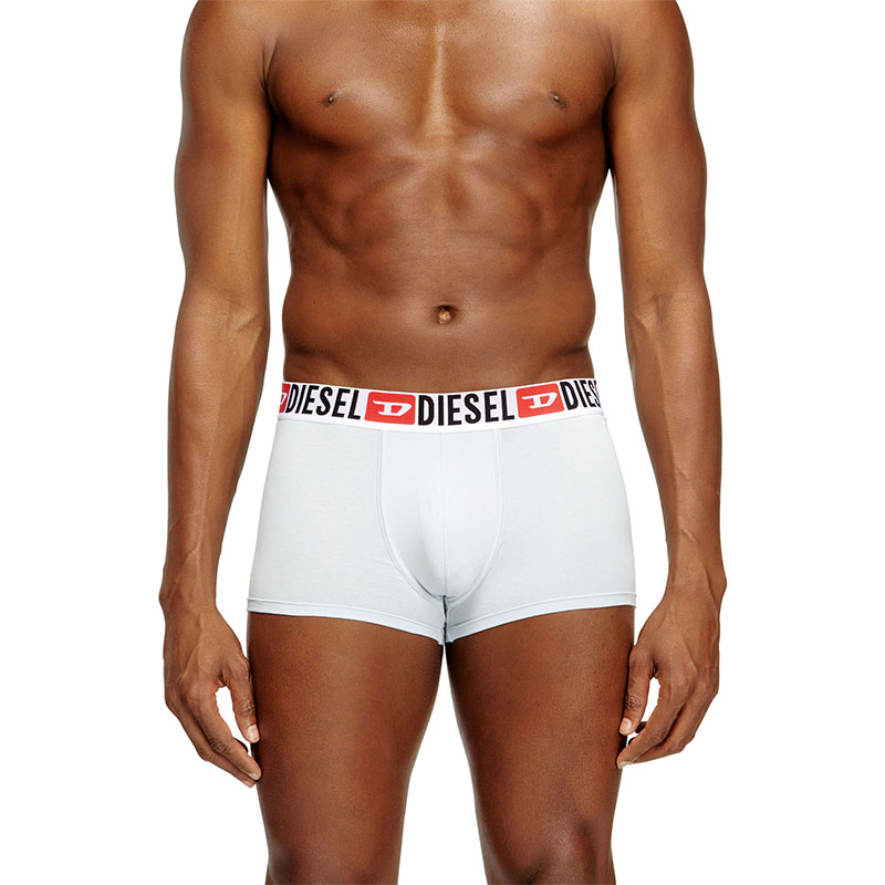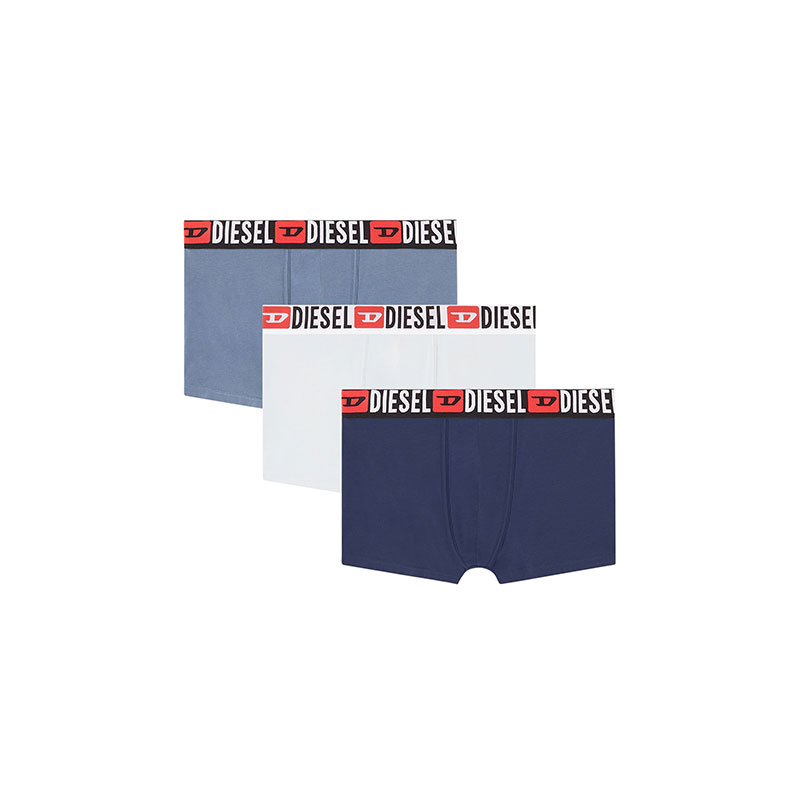 Three-pack of plain stretch cotton boxer briefs in assorted colours. Each pair features an elasticated jacquard waistband with an all-over Diesel Denim Division logo. Seamless back for enhanced comfort.