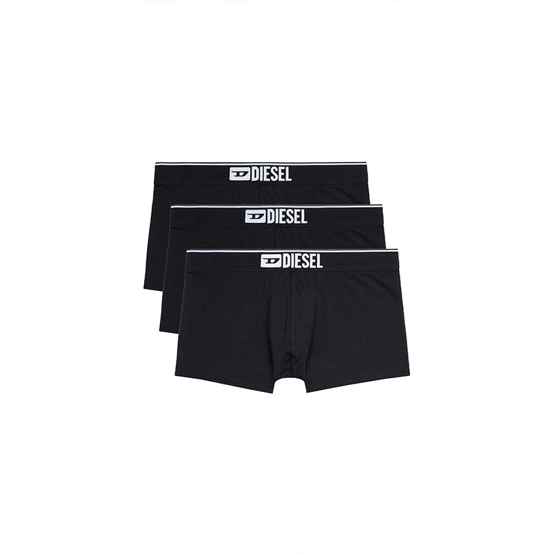 Three-pack of plain boxer briefs crafted from stretch cotton. Each pair features an elasticated waistband, detailed with a contrast stripe and front Diesel Denim Division logo.