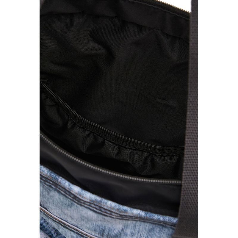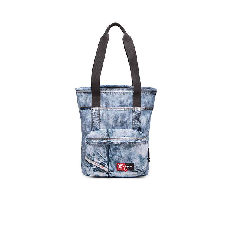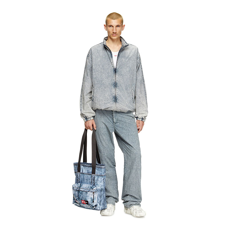 This unisex tote is one of 8 exclusive pieces born out of a special collaboration – a street and utility-driven joint effort from Diesel and Eastpak, known for expertly crafted travel gear, built to resist. Breaking codes and conventions, this technical shell bag looks like denim, but actually isn't. The hyper-realistic trompe l'oeil effect, a now key subversion tool of Diesel’s creative director Glenn Martens, is created with a digital print – incidentally, one of Eastpak’s signatures. Functional details, like long handles, zips and a roomy external pocket, inform the silhouette finished with a co-branded ‘peel-off’ jacquard patch.