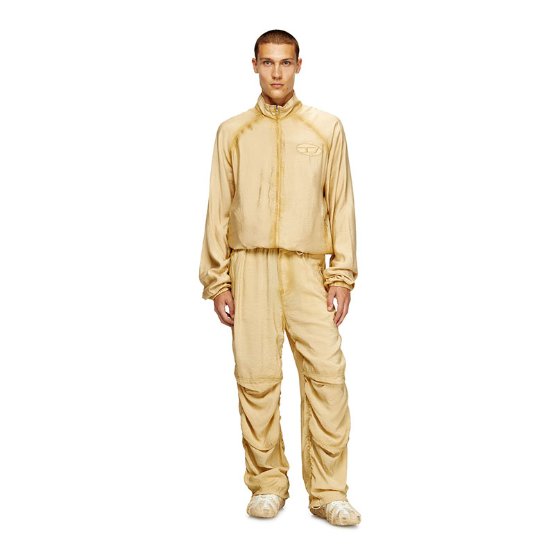 These men’s trousers are made from a blend containing a high percentage of lower-impact ECOVERO viscose fibres. The fabric is ultralight and fluid, with a subtle wrinkled texture. Slouchy articulated knees, toggled drawstrings and zip pockets define this utilitarian style. Complete with an embroidered Oval D logo on the back.