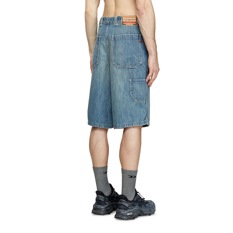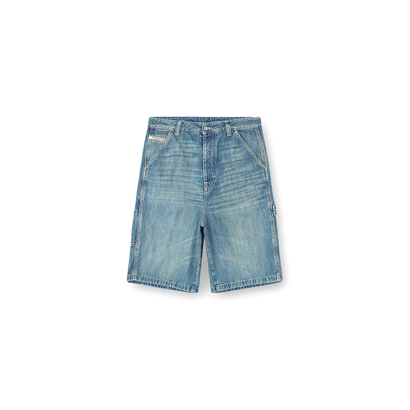 These men’s denim shorts feature a relaxed, knee-length fit and workwear-inspired details, such as the hammer loop and small patch pockets on the side of the leg.