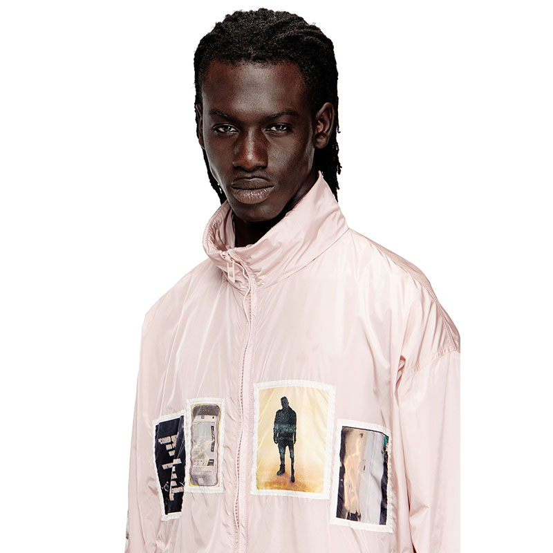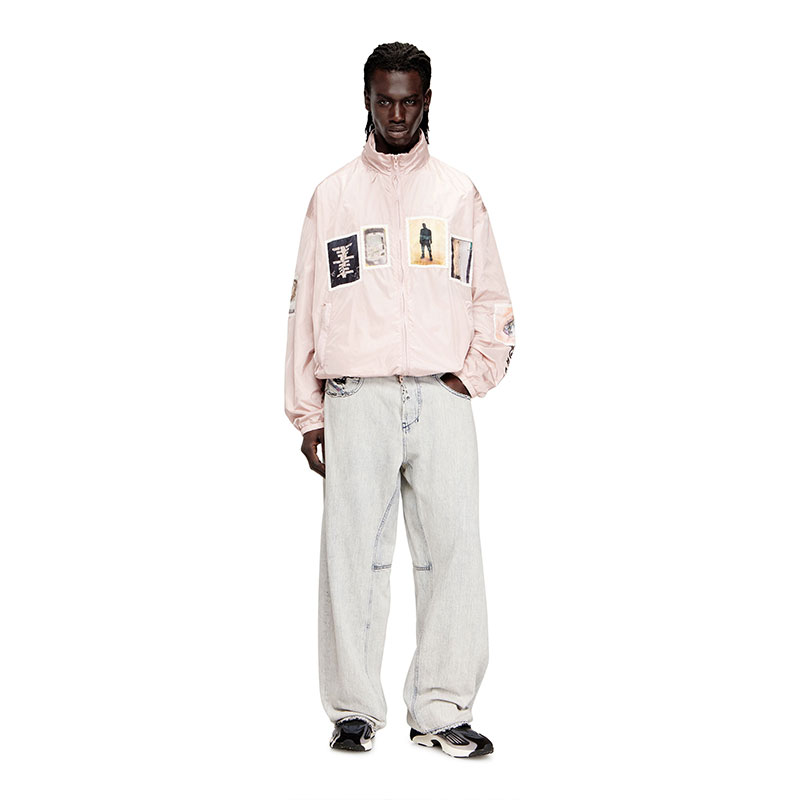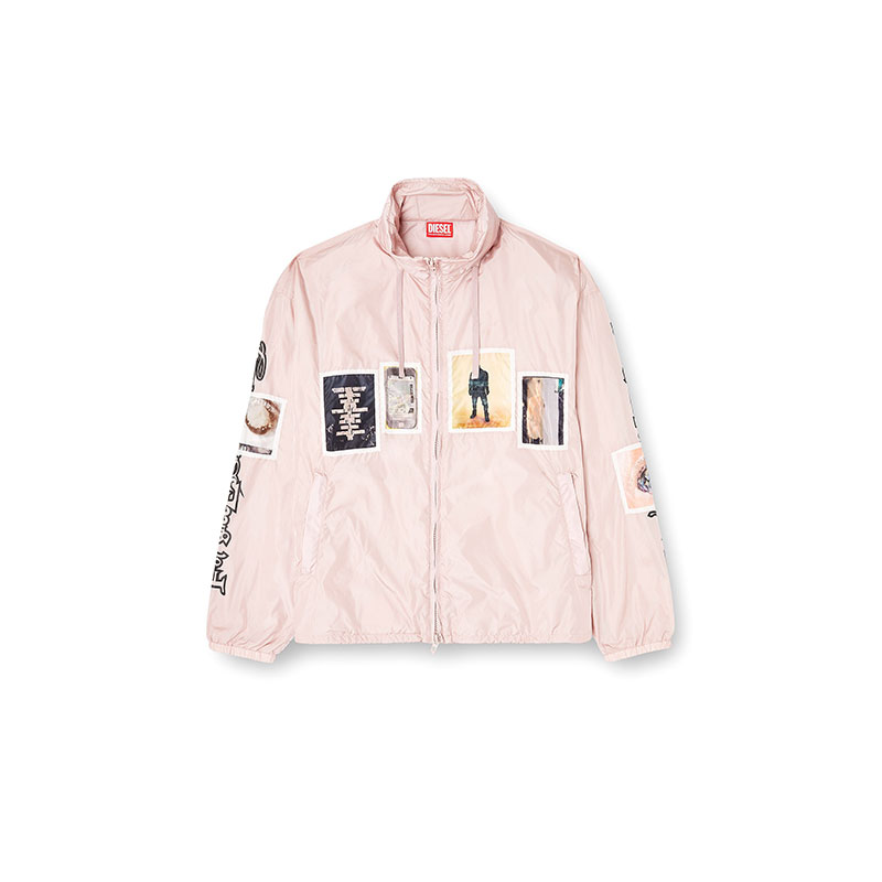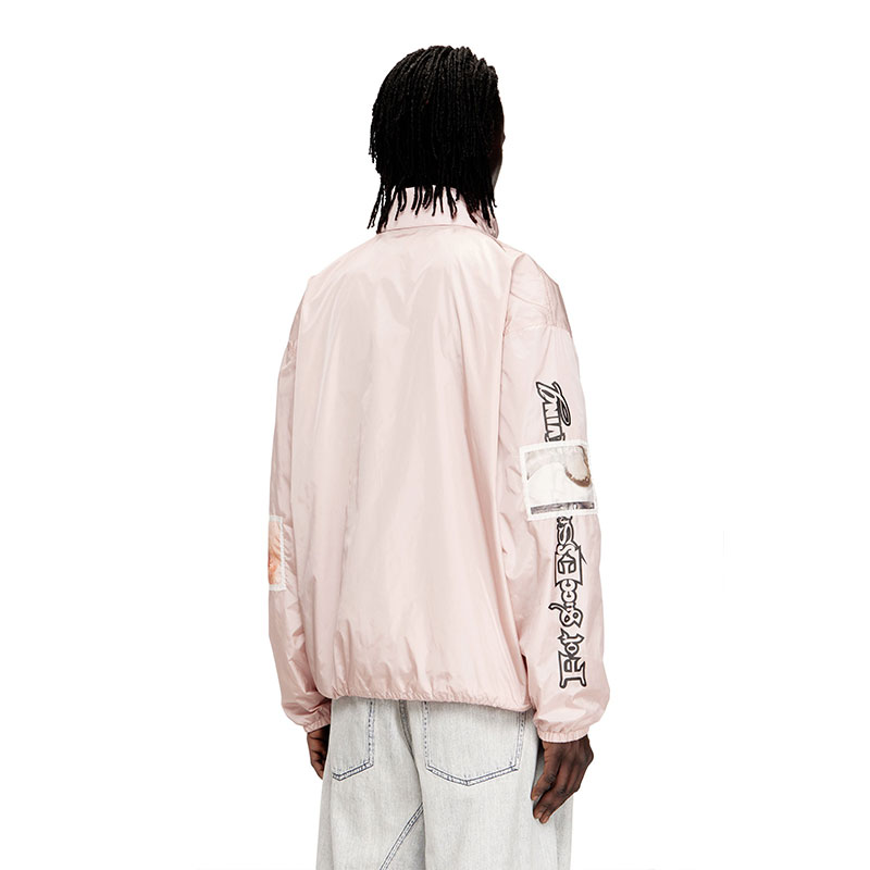 This men’s lightweight jacket is crafted from nylon in a compact weave for lasting durability and wind protection. Designed in a regular fit with a breathable mesh lining, it features a stow-away hood, secure zip pockets and an adjustable drawstring hem. Graphic patches with exclusive printed artwork and bold sleeve lettering take it from purely functional to street edge.